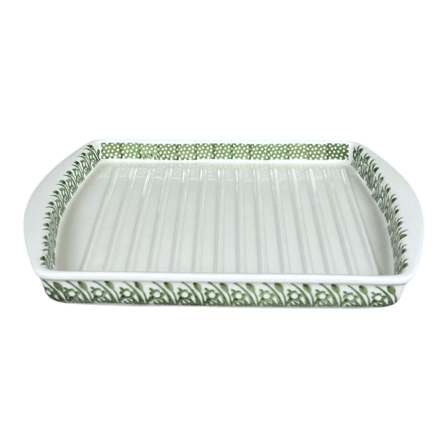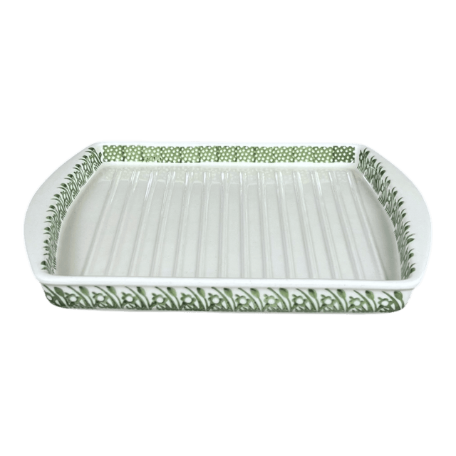 Sick of bacon grease splattering your stove top or kitchen counter? Cook your bacon in the oven or microwave on this beautiful Polish pottery bacon tray! When you're done, just pop it in the dishwasher for easy cleanup!