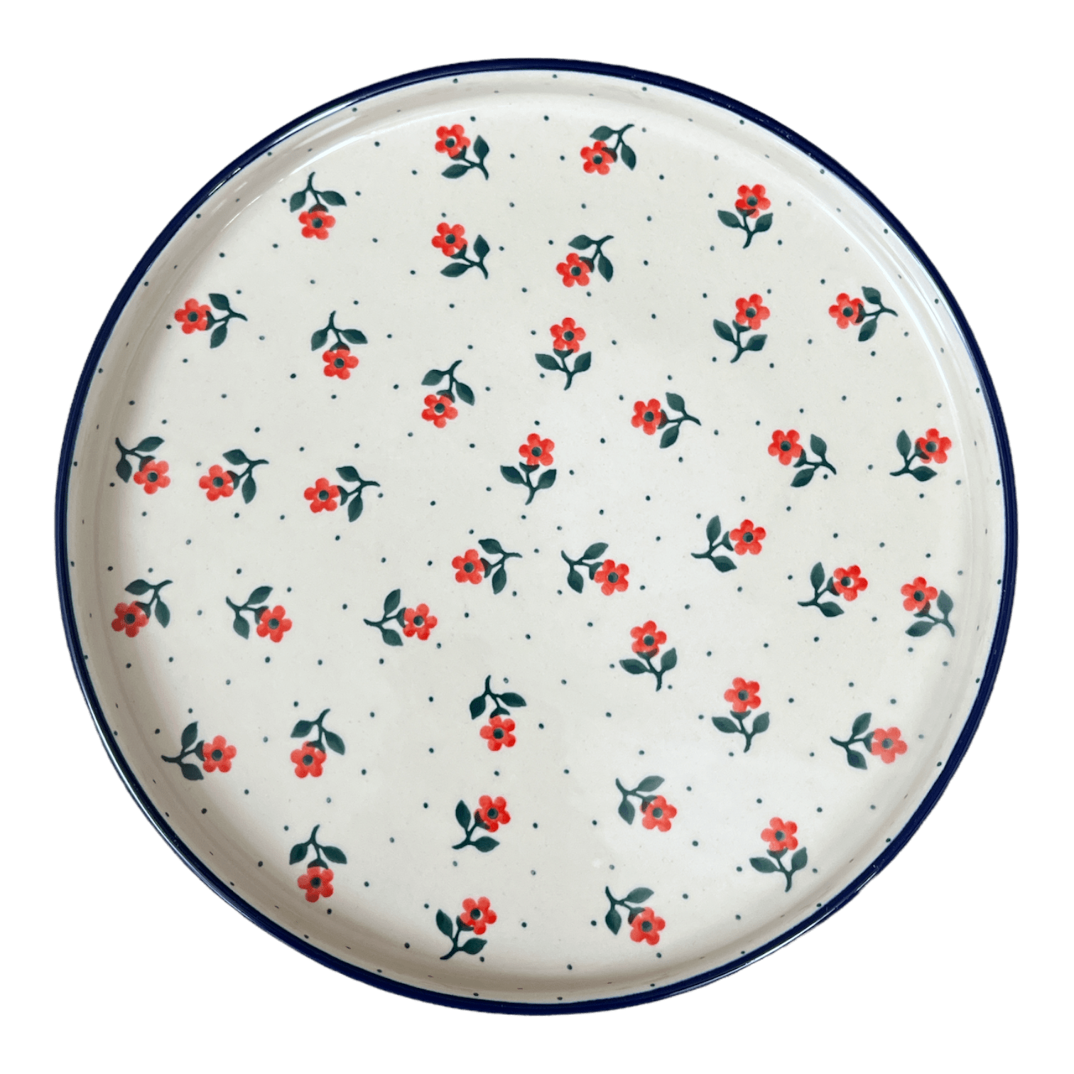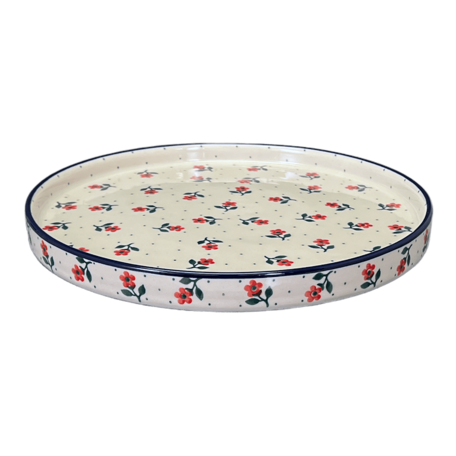 Introducing the stunning Polish Pottery 10" Round Tray by Ceramika Artystyczna in the mesmerizing "Flower Girl" pattern (1661X). These round trays are not only visually captivating, but also incredibly versatile! The "Flower Girl" pattern showcases a delightful blend of design elements, featuring an abundance of vibrant red flowers with delightful accents in refreshing shades of green and white. It's like having a piece of nature's beauty right in the palm of your hands!