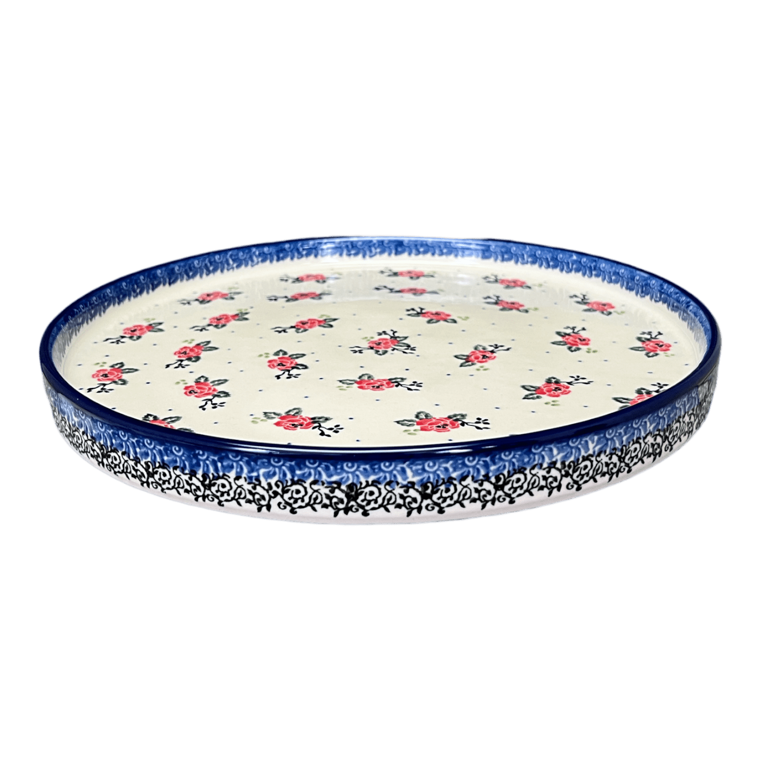 Introducing the Polish Pottery 10" Round Tray by Ceramika Artystyczna in the captivating "Wild Rose" pattern (1525X). This tray is not just a pretty face, it is as versatile as it is beautiful! The "Wild Rose" pattern features design elements that incorporate vibrant flowers in a predominantly red color, with accents in blue, green, and black. It's a feast for the eyes!