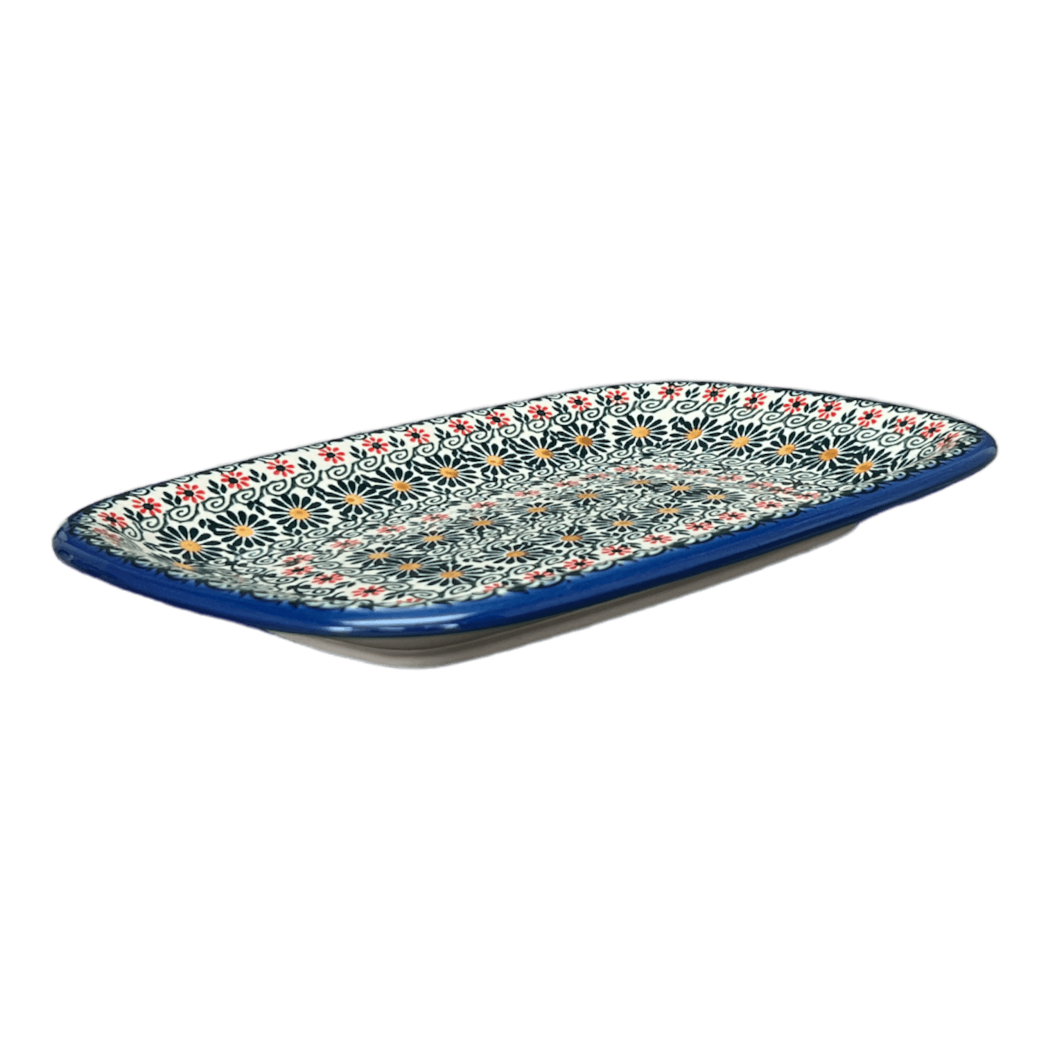 Handmade in the historic town of Boleslawiec, Poland, this tray exemplifies the traditional Polish pottery technique known as "punching" or hand stamping. Each piece is a testament to the artisan's skill, creating a unique item that varies slightly from one to the next, adding to its charm and individuality. While the "Garden Breeze" pattern adheres to a traditional style, known for its accessibility and broad appeal, it also carries the unique signature of its creator, making it a popular choice among collectors and enthusiasts of fine pottery. This tray isn’t just a serving piece; it’s a conversation starter, perfect for any occasion, from casual gatherings to elegant dinner parties.