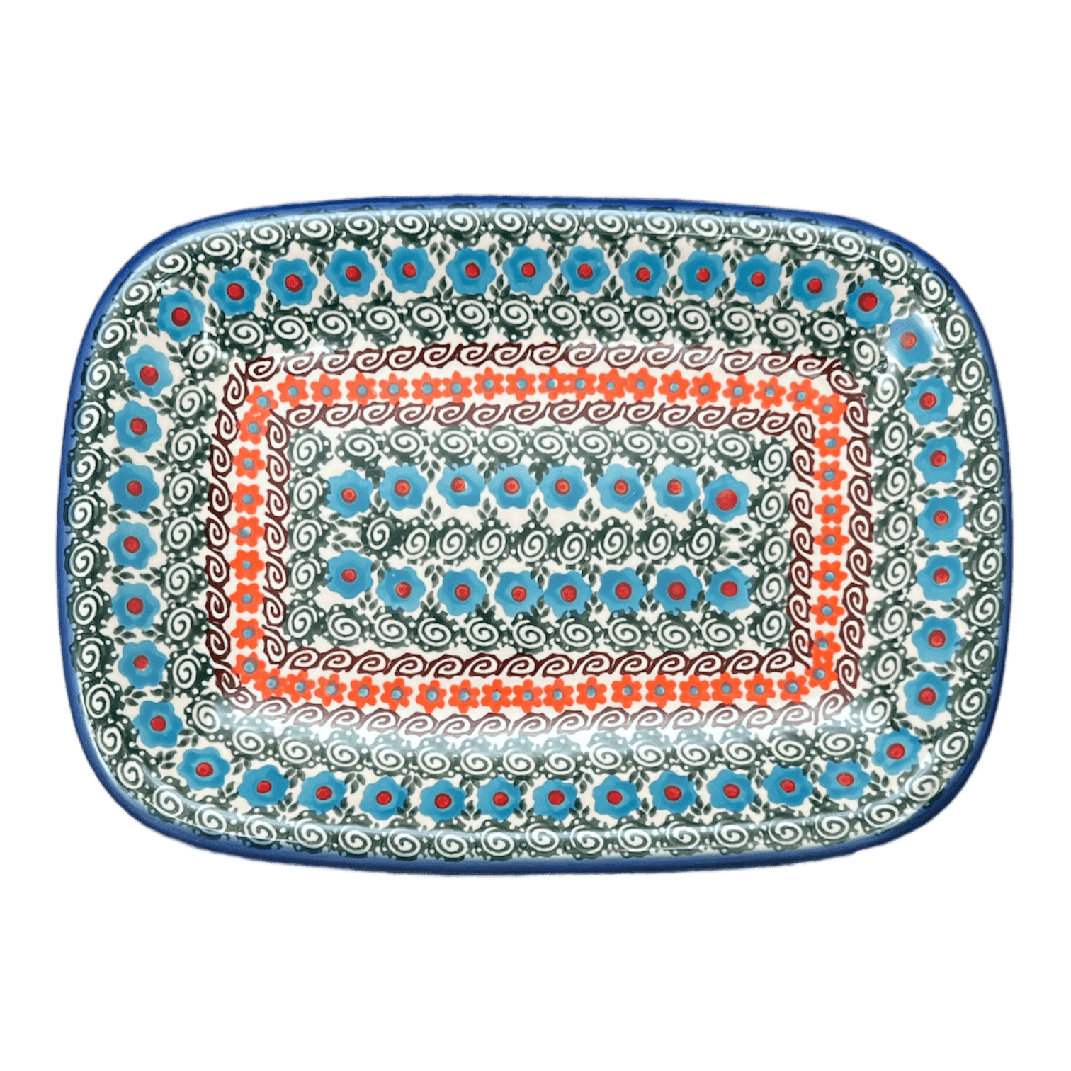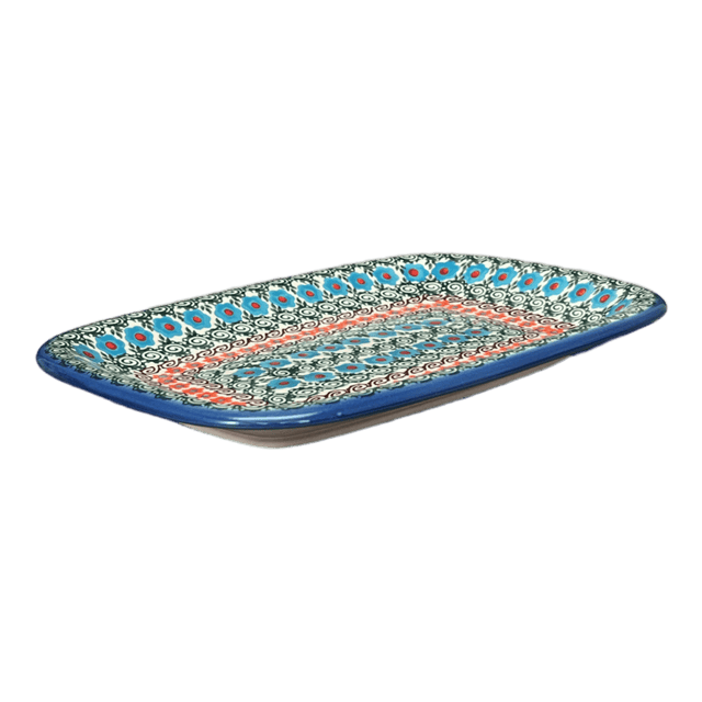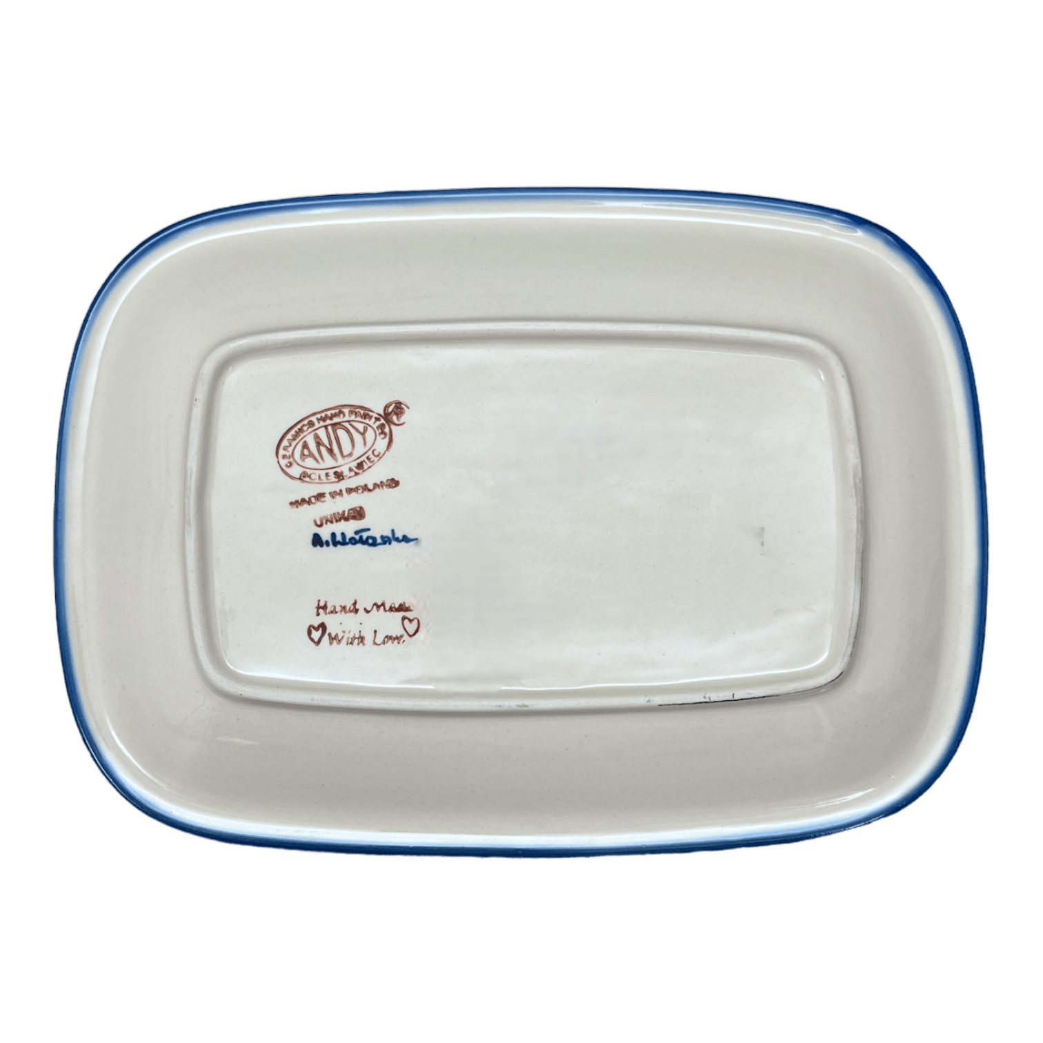 This stunning 8" x 11" serving tray is not only a feast for the eyes but also a marvel of functionality. Whether you're laying out an array of appetizers, showcasing your favorite desserts, or simply serving a family meal, this tray handles it all with elegance and ease. The durability of Polish pottery is unmatched, being safe for use in the dishwasher, microwave, refrigerator, freezer, and even the oven up to 425 degrees. Free from lead, nickel, and cadmium, this tray ensures a safe and splendid addition to your culinary presentations.