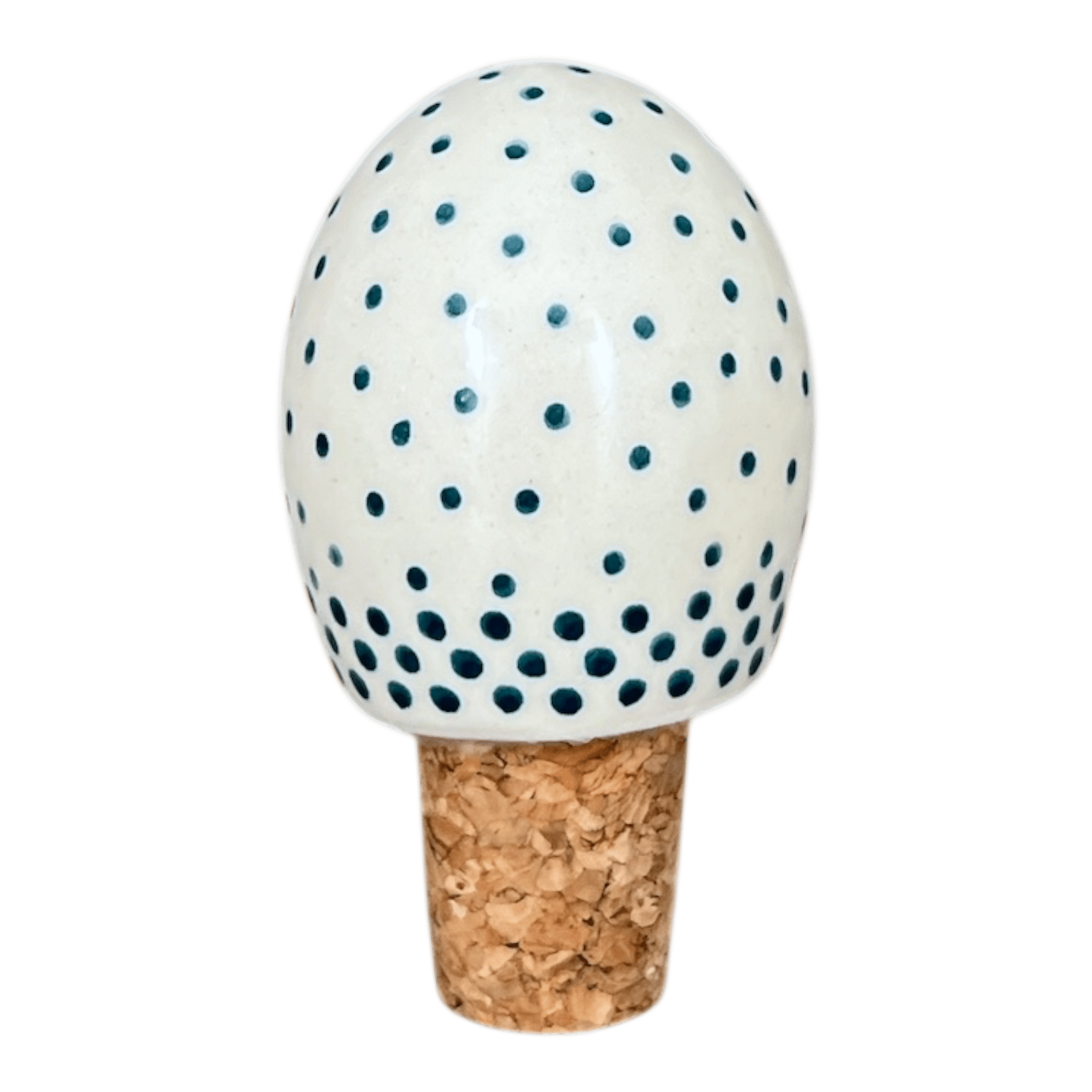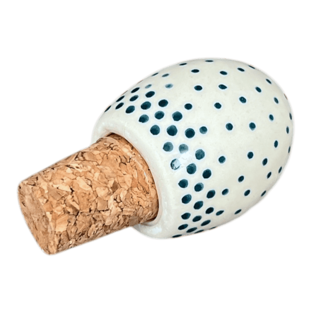 Imagine the elegance of the "Misty Green" pattern gracing your dinner party as you uncork your favorite wine. This exquisite Polish Pottery Wine Cork from Manufaktura isn't just a tool; it's a piece of art! Standing at 2.75 inches with the cork, this egg-shaped beauty features a charming white background speckled with tiny green dots, culminating in a delicately dotted green rim. Handcrafted in Boleslawiec, Poland, this wine cork transforms the simple act of opening a bottle into a ceremonial flourish that's sure to captivate your guests.