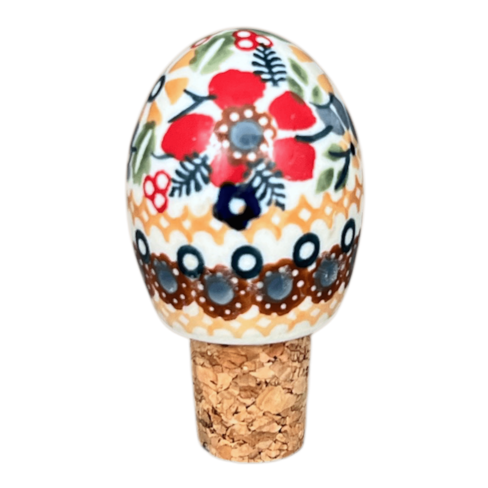 Imagine capping off your favorite vintage with a flourish of artistry! The Polish Pottery Wine Cork, egg-shaped and standing a petite 2.75 inches tall, is more than just a stopper—it's a miniature masterpiece. Crafted by the renowned artisans at Manufaktura in the heart of Boleslawiec, Poland, this exquisite piece is adorned with the vibrant "Ruby Duet" pattern. Vivid reds and golds dance with soothing whites and blues, set against a pristine white backdrop. Each design element is meticulously hand-painted, celebrating the rich tradition of Polish craftsmanship in every brushstroke.