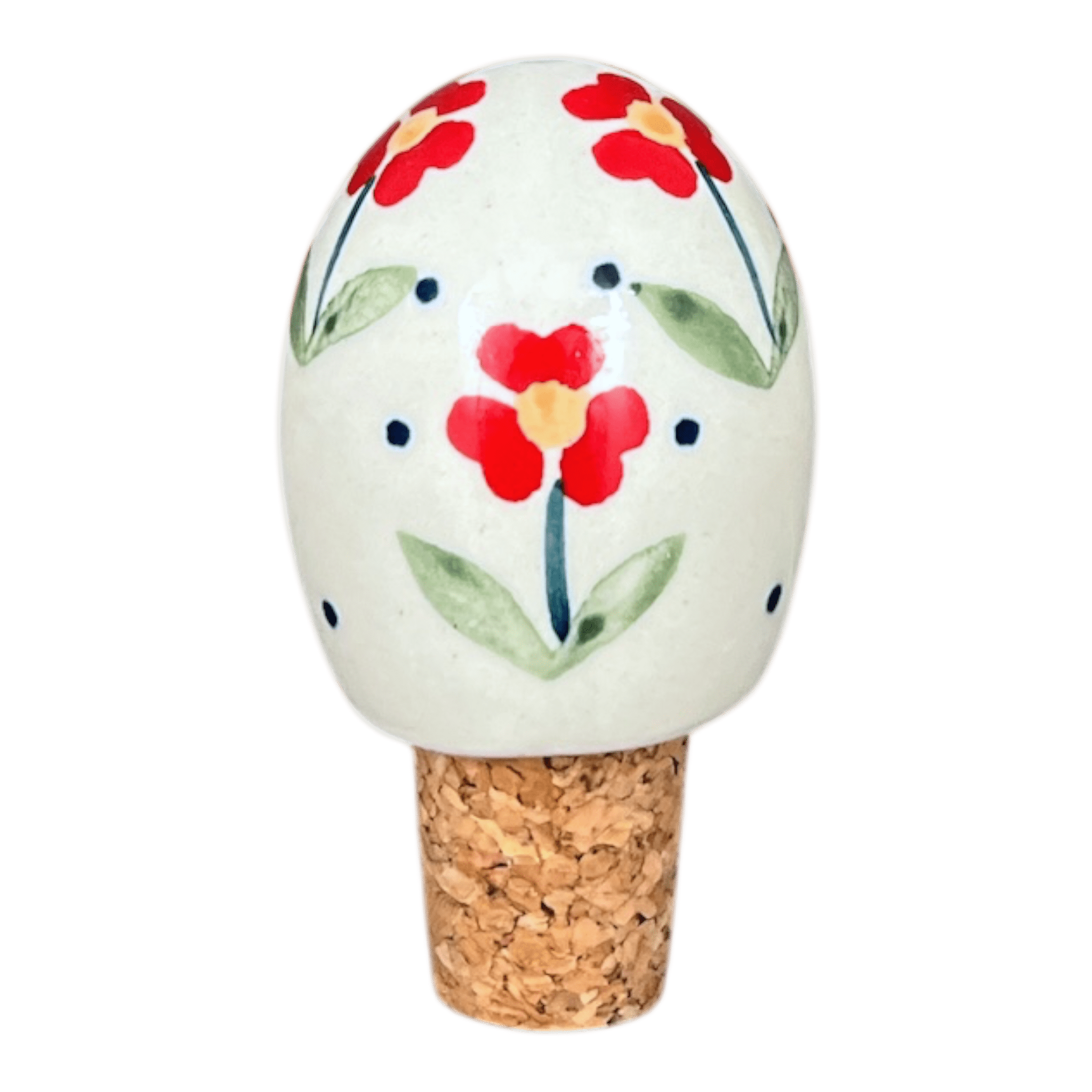 Imagine the charm of the Polish countryside captured in a delightful little artifact that's perfect for your wine nights! Introducing the Polish Pottery Wine Cork, a quaint, egg-shaped gem crafted by the skilled artisans of Manufaktura. Standing at 2.75 inches tall, this wine cork features the enchanting "Simply Beautiful" pattern. Picture a tapestry of petite red flowers connected by delicate green stems, each bloom surrounded by tiny blue dots sprinkled in the spaces in between, bringing a splash of rural Polish charm right to your dining room.