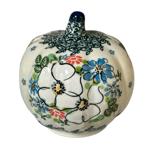 Step into the enchanting world of autumn elegance with the Polish Pottery Decorative Pumpkin by Galia, adorned in the captivating "Large White Daisy" pattern. Imagine a canvas of lush green, sprinkled with large, pristine white daisies, each center playfully dotted with hints of yellow, red, and blue - a delightful nod to the crisp fall season. This 4-inch masterpiece, meticulously hand-painted in the historic town of Boleslawiec, Poland, is not just a decorative item but a piece of art that tells a story of tradition, craftsmanship, and the beauty of nature encapsulated in ceramic.