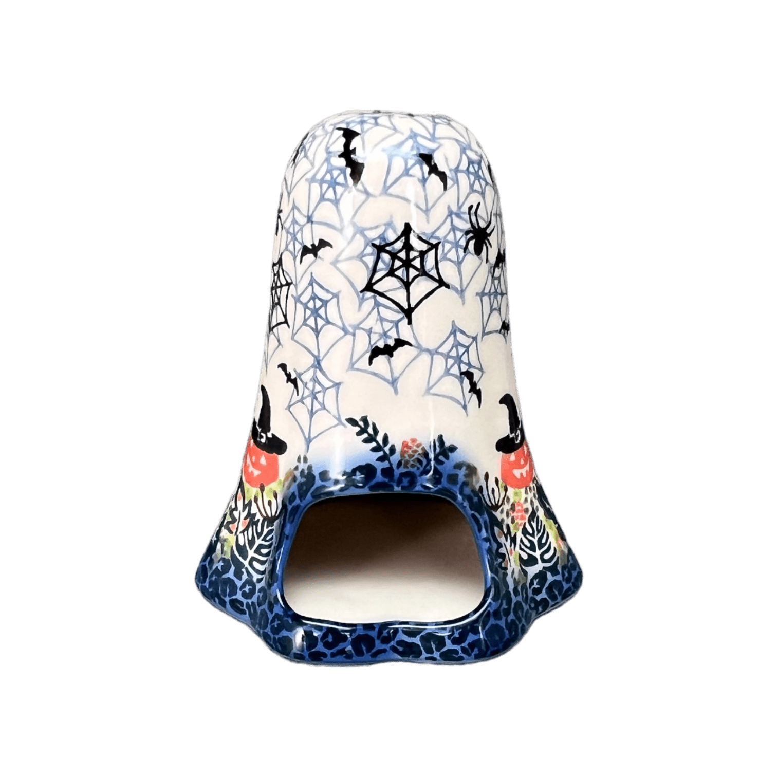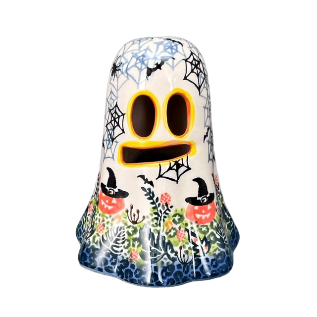 Step into the enchanting world of Halloween with the delightful Polish Pottery Luminary, Ghost, 5.25", crafted by the renowned artisans at Galia in the whimsical "All Hallows' Eve" pattern. This charming luminary is shaped like a friendly ghost, ready to illuminate your festive evenings. Just pop in a tealight—be it a flickering real flame or a safe, battery-operated light—and watch as the ghost casts a warm, inviting glow that dances across the room, turning any space into a cozy, spooky nook.