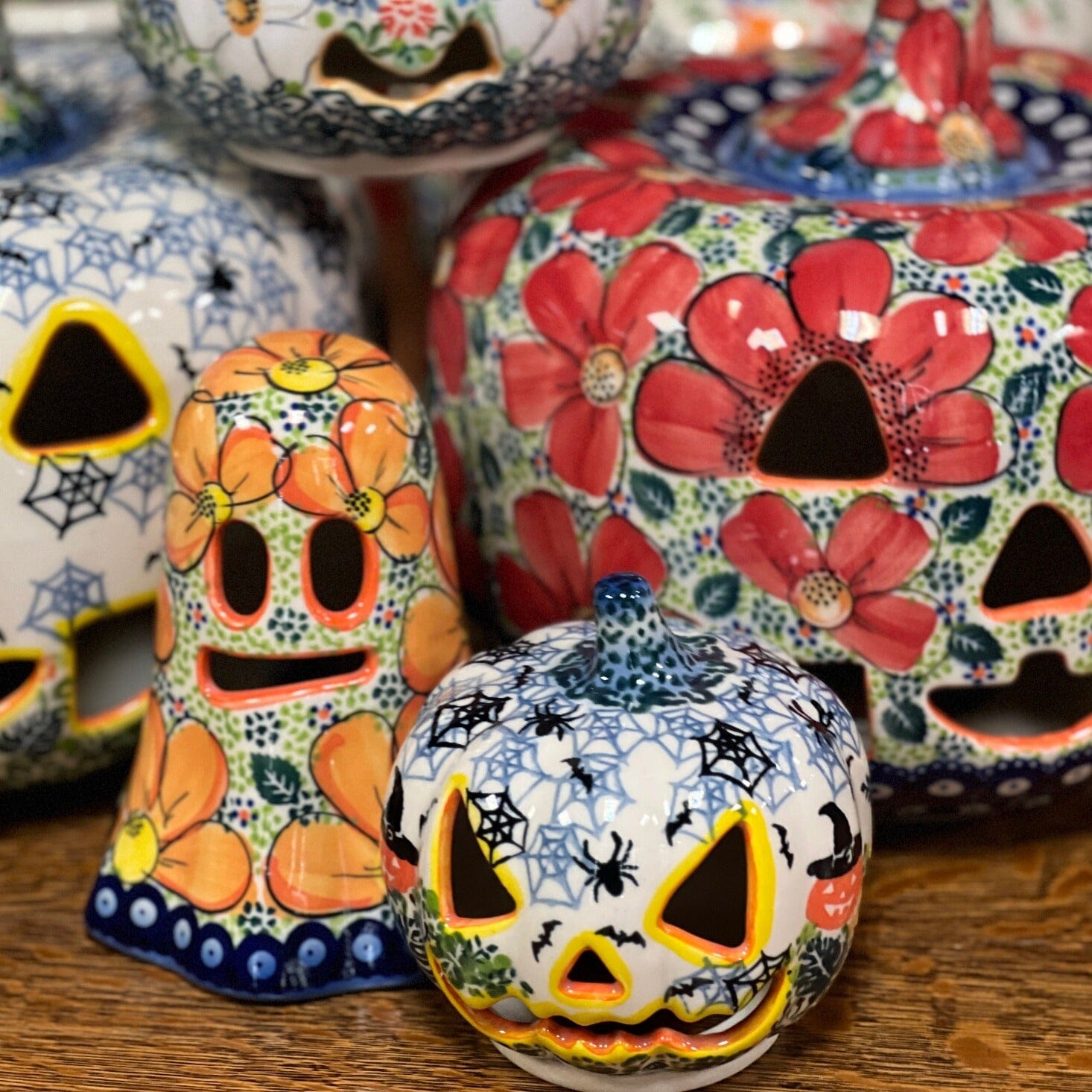 Made in Boleslawiec, Poland, this ghost luminary is hand-painted by skilled craftsmen using only the finest materials, which are renowned for their durability and chip resistance. Free from lead, nickel, and cadmium, each piece is not only safe but also a testament to the sustainable practices of Ceramika Galia—a family-owned company with deep roots and a commitment to excellence. Whether displayed alone or paired with other captivating pieces from Polish Pottery, this luminary adds a splash of color and an air of mystery that will surely bewitch your guests and make your Halloween celebration unforgettable.