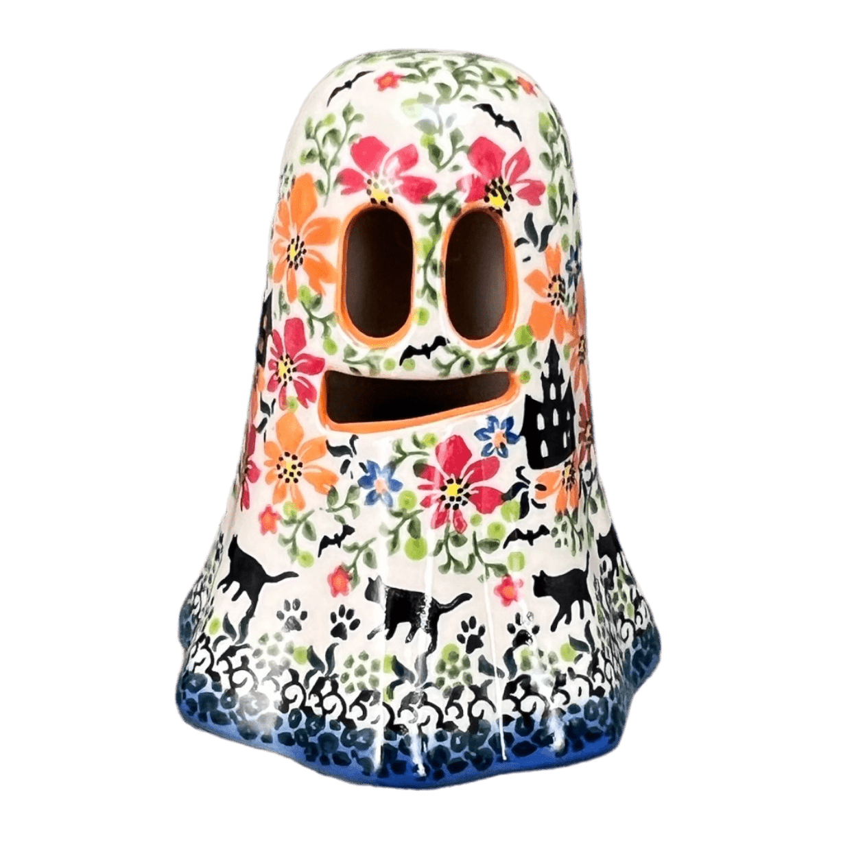 Step into a world where Halloween isn't just a holiday, it's a celebration of artistry and imagination! Introducing the Polish Pottery Luminary Ghost, standing at a charming 5.25 inches and crafted by the renowned Galia in the mesmerizing "Black Cat Crossing" pattern. Imagine this delightful ghost casting a warm, inviting glow in your home as you place a tealight inside it—whether you choose a flickering real candle or a safe, battery-operated light. This adorable luminary promises not only to light up your space but also to spark conversations and admiring glances from all who see it.