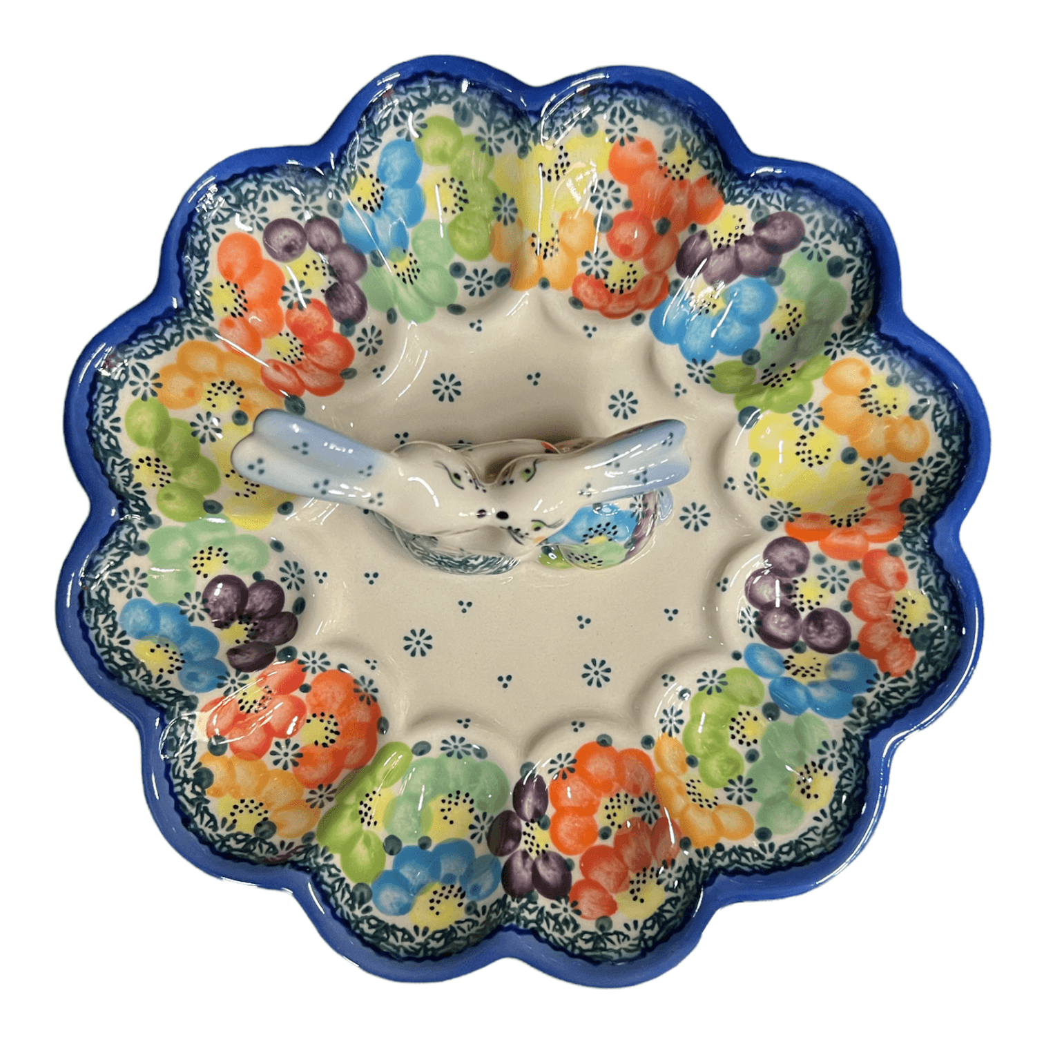 Plate, Round, Egg Plate, 8.75" Bunny in "Rainbow Wreath" by Galia | GT14-UV3