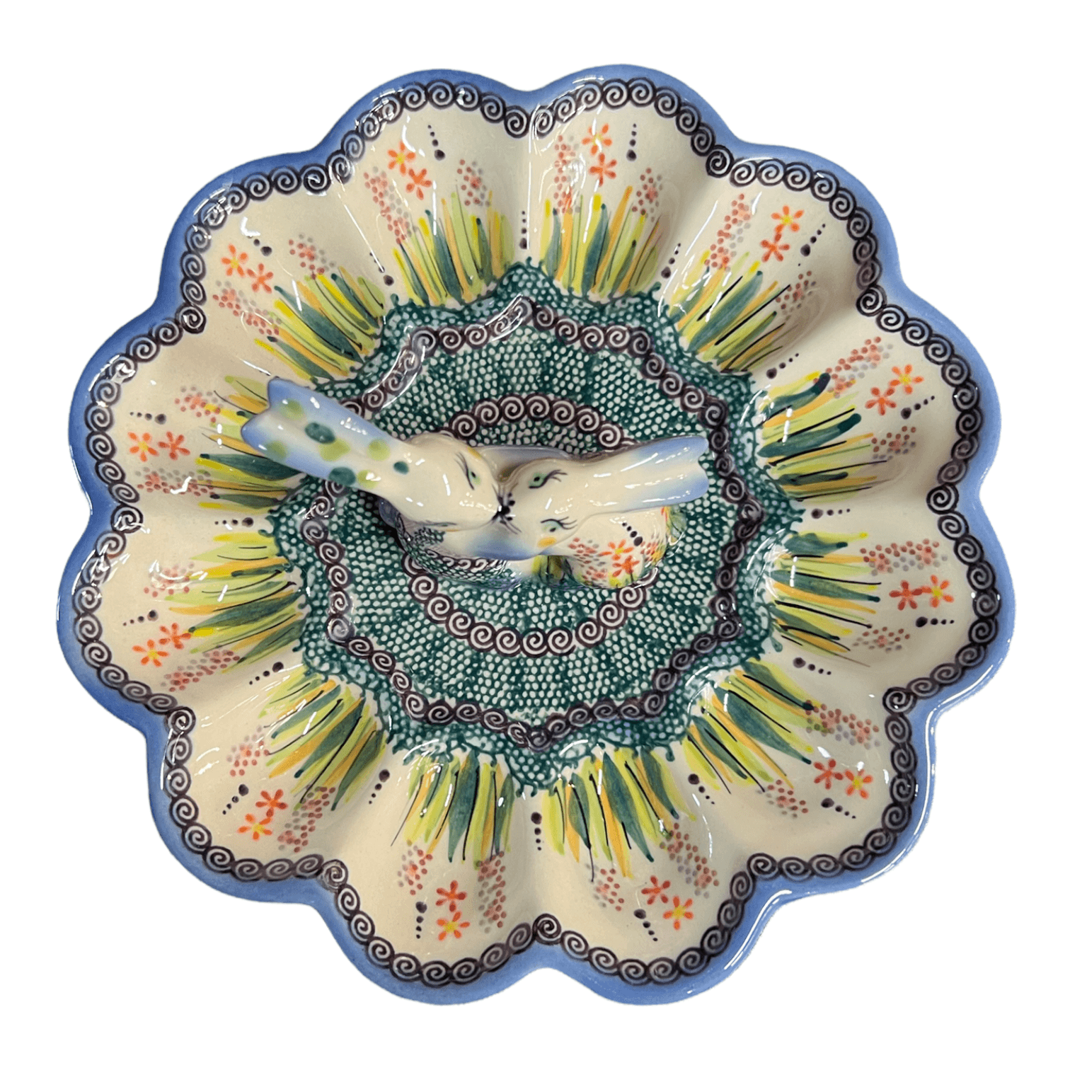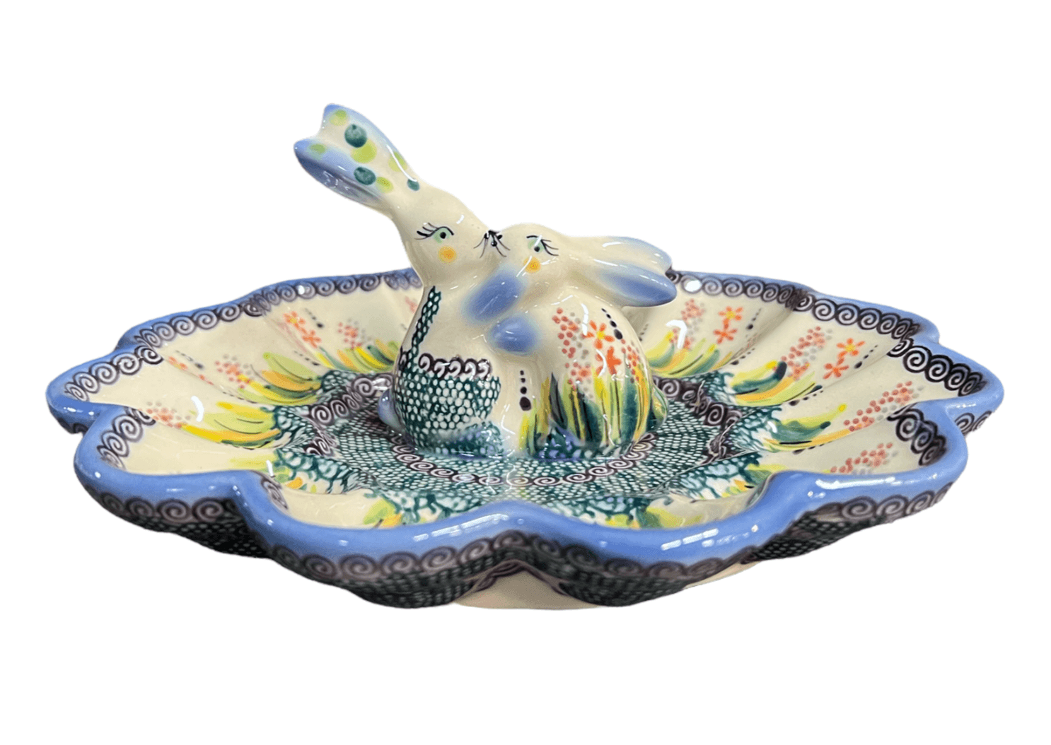 Plate, Round, Egg Plate, 8.75" Bunny in "Morning Meadow" by Galia | GT14-ULA is backordered and will ship as soon as it is back in stock.