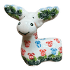 Meet the charming Polish Pottery Figurine, a delightful Reindeer standing at a petite 3.25 inches, crafted by the esteemed artisans at Galia in the vibrant "Colorful Baubles" pattern (PB2). This exquisitely hand-painted reindeer is more than just a figurine; it's a sprinkle of festive magic! Decked out in a festive palette of predominantly red with playful accents of blue and orange, this little reindeer promises to brighten any corner of your home. Whether perched on your mantel or nestled among books on a coffee table, it's designed to add a dash of holiday cheer and a pop of color to your everyday life.