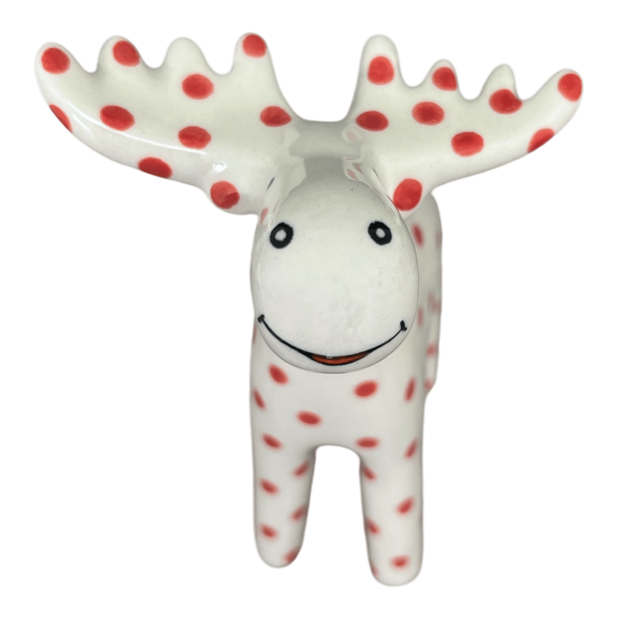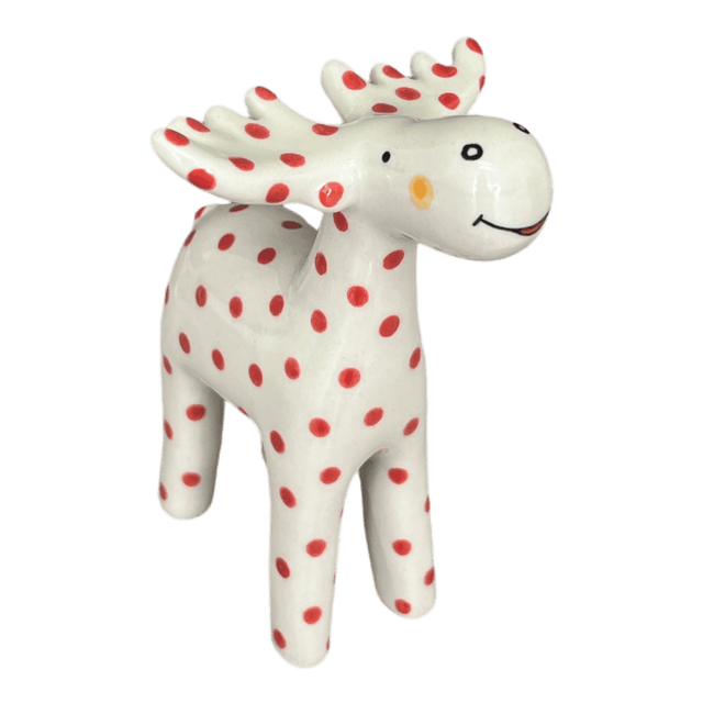 Step into a winter wonderland with the enchanting Polish Pottery Reindeer Figurine, crafted with care by the artisans at Galia. Standing proudly at 6.75 inches, this delightful reindeer is more than just a decoration; it's a piece of art that captures the spirit of the holidays. Adorned in the vibrant "Dotted Reds" pattern, this figurine features playful dots that dance across a rich, red backdrop, bringing a splash of color and joy to any room it graces.
