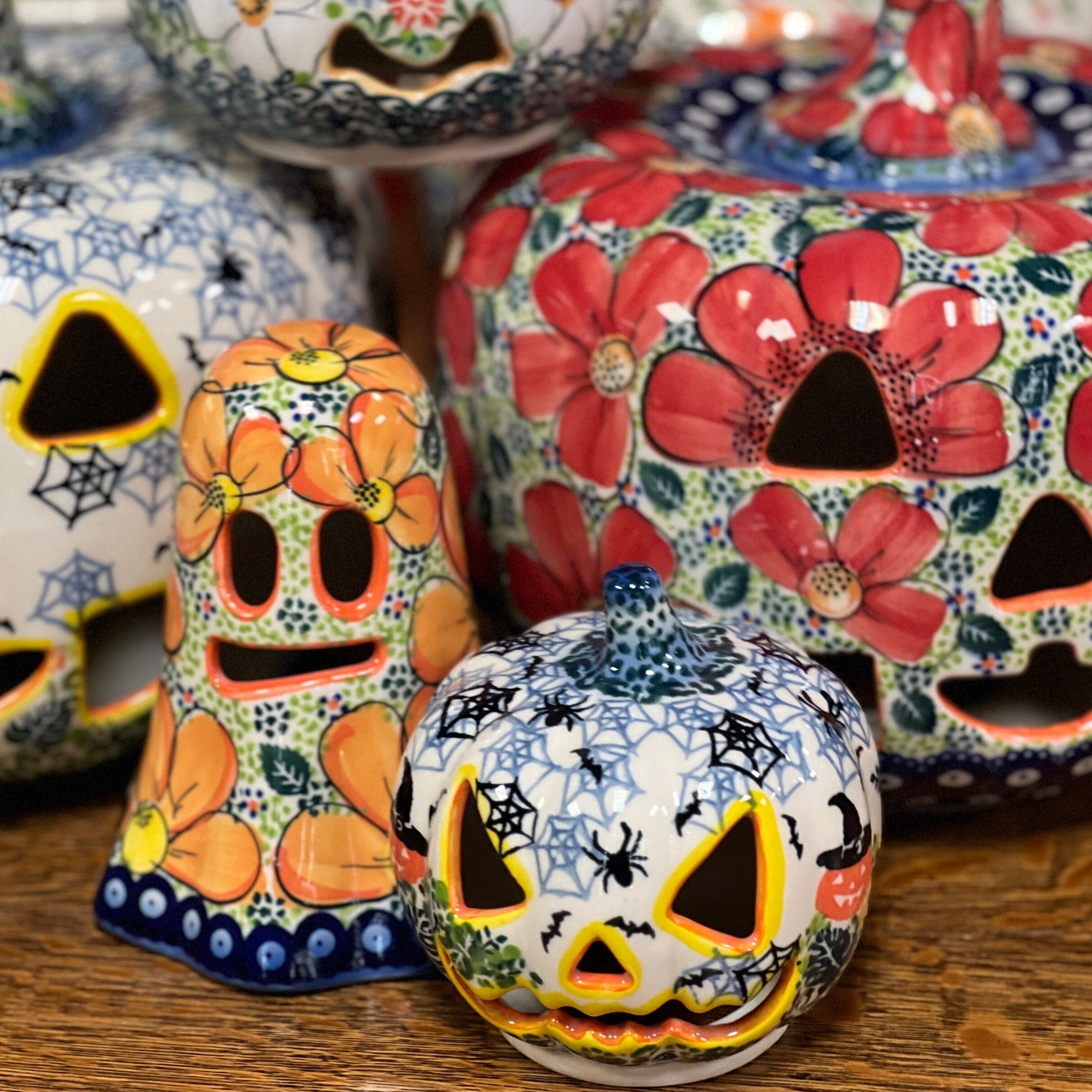 Made in the picturesque town of Boleslawiec, Poland, this luminary reflects a centuries-old tradition of craftsmanship. Using locally sourced, natural raw materials, each Polish Pottery piece from Galia is a testament to durability and quality, free from Lead, Nickel, or Cadmium. Perfectly suited for both functional use and decorative display, these pieces are tough, chip-resistant, and vibrantly colorful, ready to enhance any room or dinner table. Whether you're setting a spooky scene for Halloween or looking for a striking year-round display, this luminary invites a story of international artistry and heritage into your home, making every glance a journey into a world of artistic wonder.