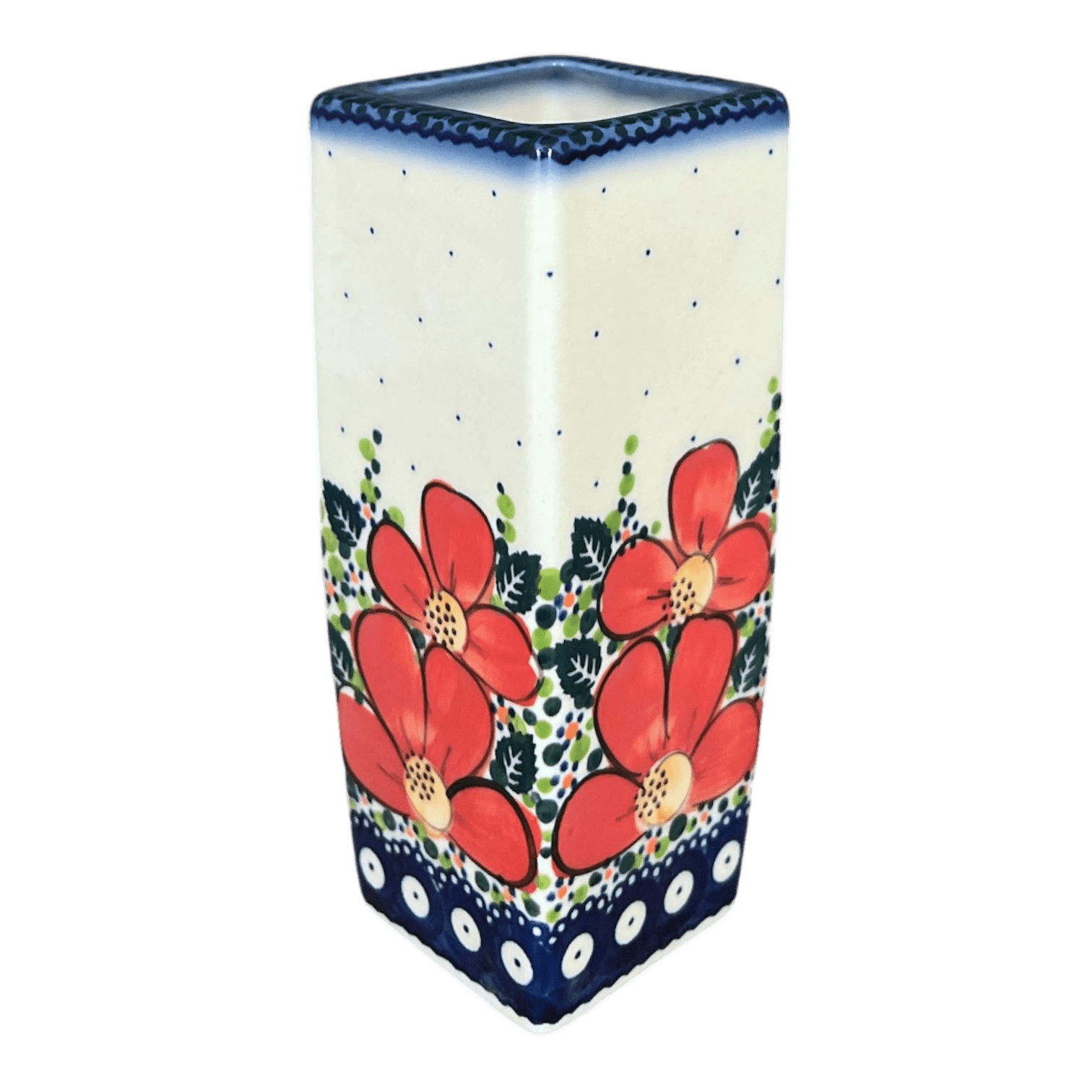 Vase, Square Vase, 6.5" in "Red Daisy Dot" by Galia | GW07-UCK is backordered and will ship as soon as it is back in stock.