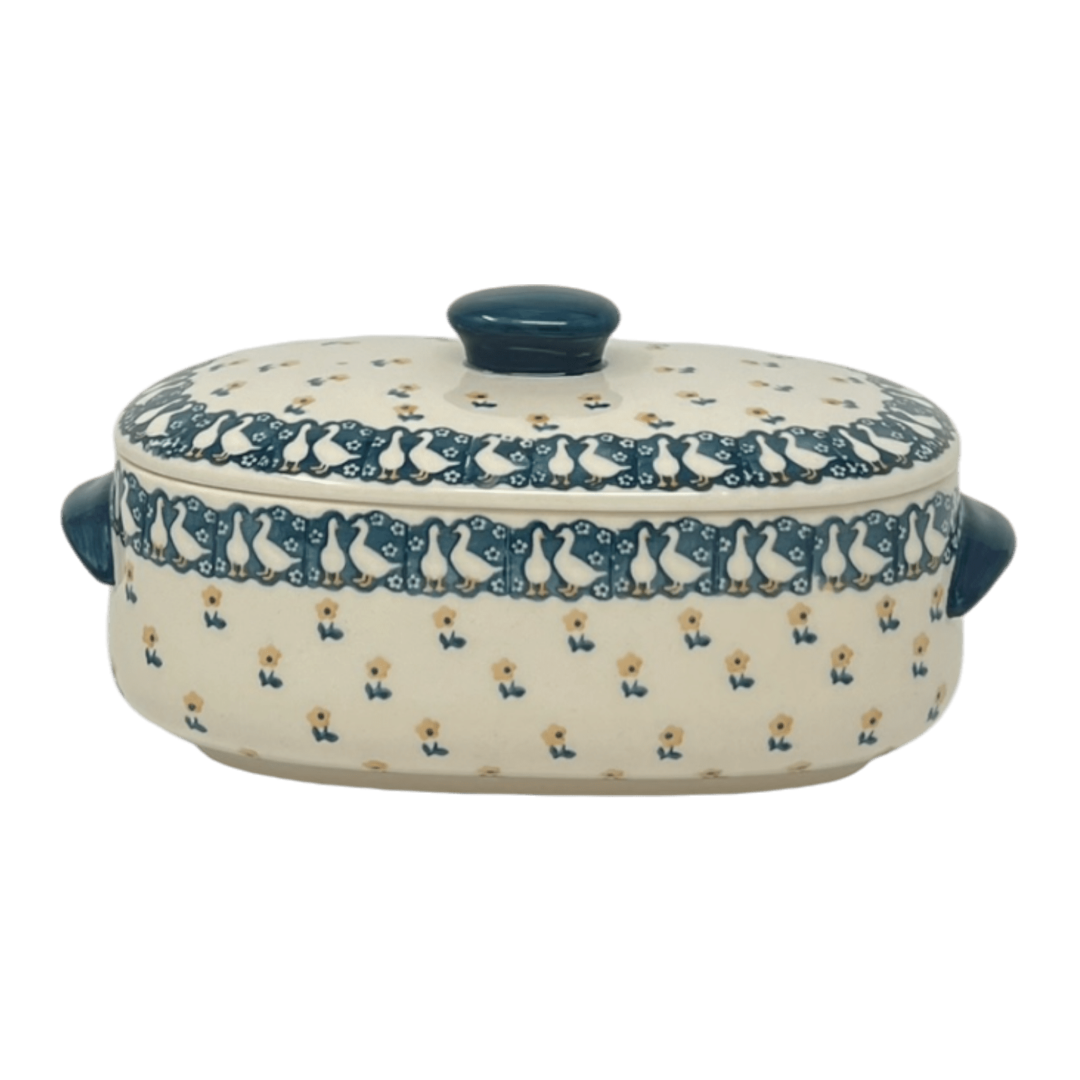 Imagine a delightful, quaint kitchen accessory that does more than just sit pretty—meet the Polish Pottery Baker from Manufaktura! This charming small oval baker, adorned with the whimsical "Lucky Duck" pattern, is a true masterpiece of craftsmanship. Measuring 11" x 5.5", it's the perfect size for whipping up cozy casseroles, baking scrumptious loaves of bread, or even simmering hearty beans. With its handy lid and ergonomic handles, this baker combines functionality with rustic elegance, making it a joy to use and a beauty to behold on any table.