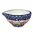 Introducing the enchanting Polish Pottery Bowl from Manufaktura, a piece that combines functionality with an explosion of color and tradition! This unique mortar, measuring a versatile 4.5" by 5", is adorned with the vibrant "Flower Power" pattern, featuring a lively dance of red and orange flowers set against a crisp white background with whimsical blue swirls. Perfect for the modern chef who appreciates a splash of style, this bowl not only elevates your kitchen decor but also turns everyday cooking into an art form. Whether you're whisking an egg, mixing a vibrant matcha, or drizzling your favorite sauce, the cleverly designed spout ensures a smooth transition from bowl to pan with no fuss!