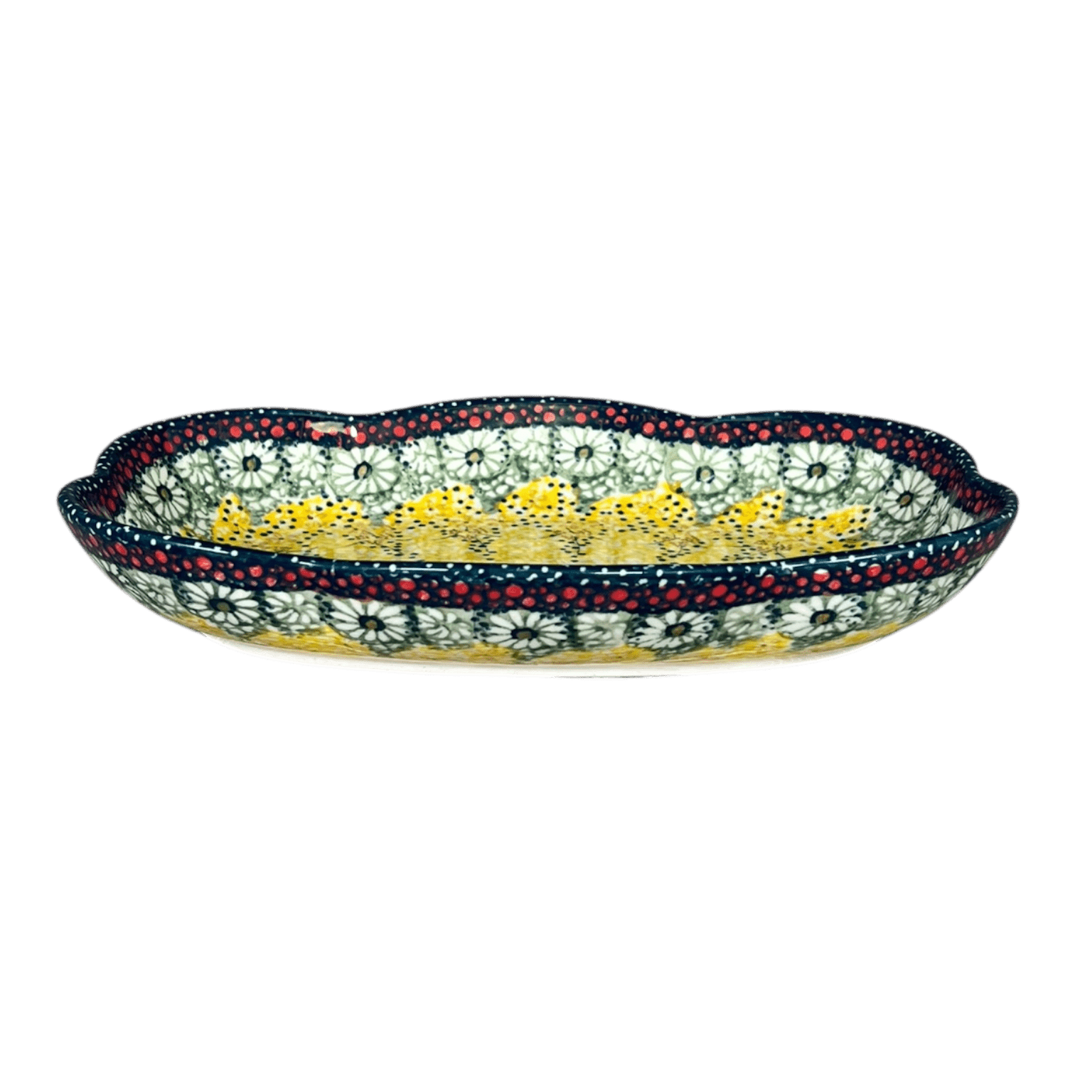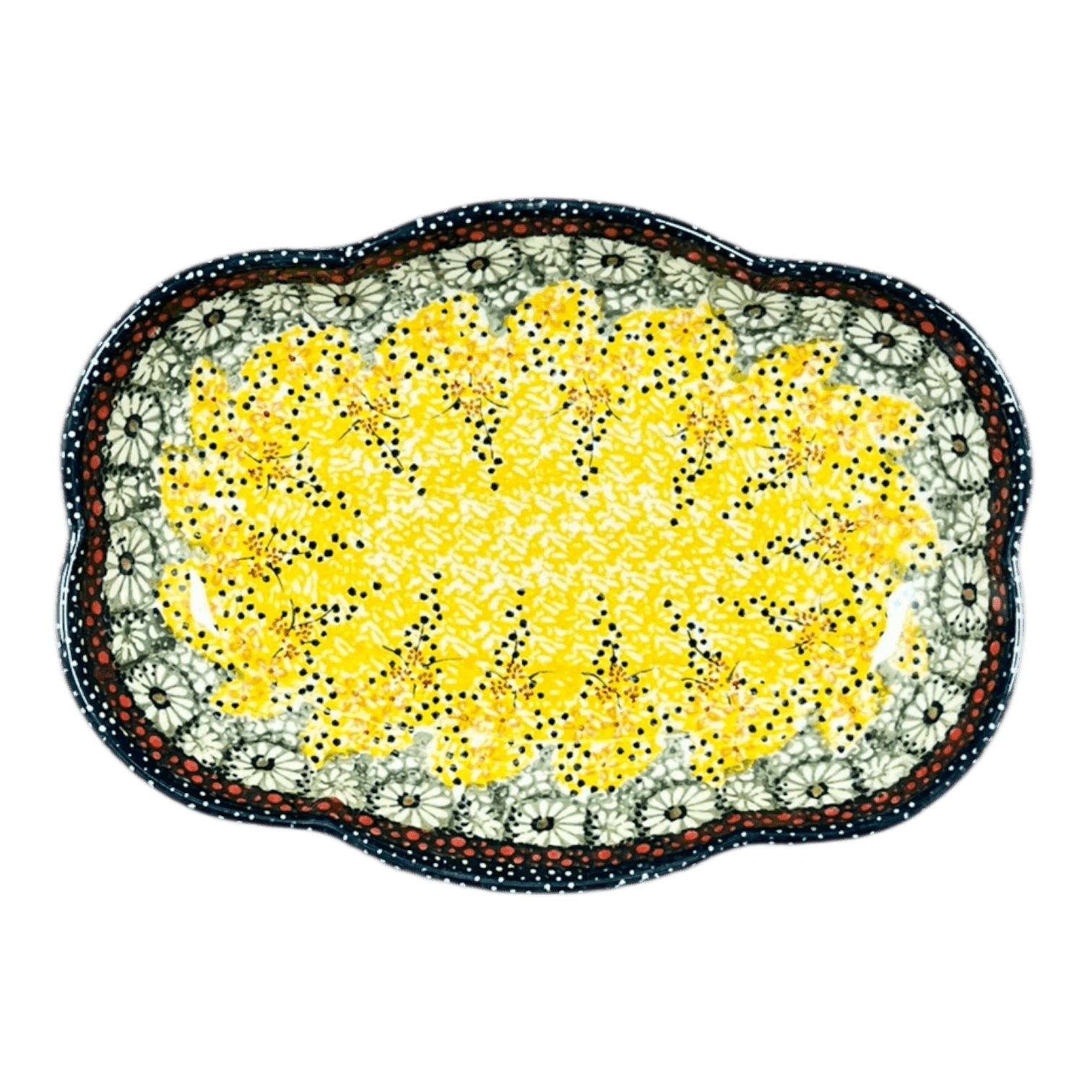 Imagine serving your guests with a dish so enchanting that it starts conversations and fetches compliments! The Polish Pottery Dish from Manufaktura, shaped like a whimsical cloud and adorned with the delightful "Sunshine Grotto" pattern, does just that. This large 9.5" x 7" hand-painted masterpiece is not just a dish; it's a portal to a cheerful, sunny meadow. The vibrant yellow backdrop and playful green and white flowers create a scene that’s as inviting as a warm, sunny day. Whether you're dishing out appetizers or using it as a chic coffee table catch-all, this piece promises to lift spirits and add a dash of joy to your home.