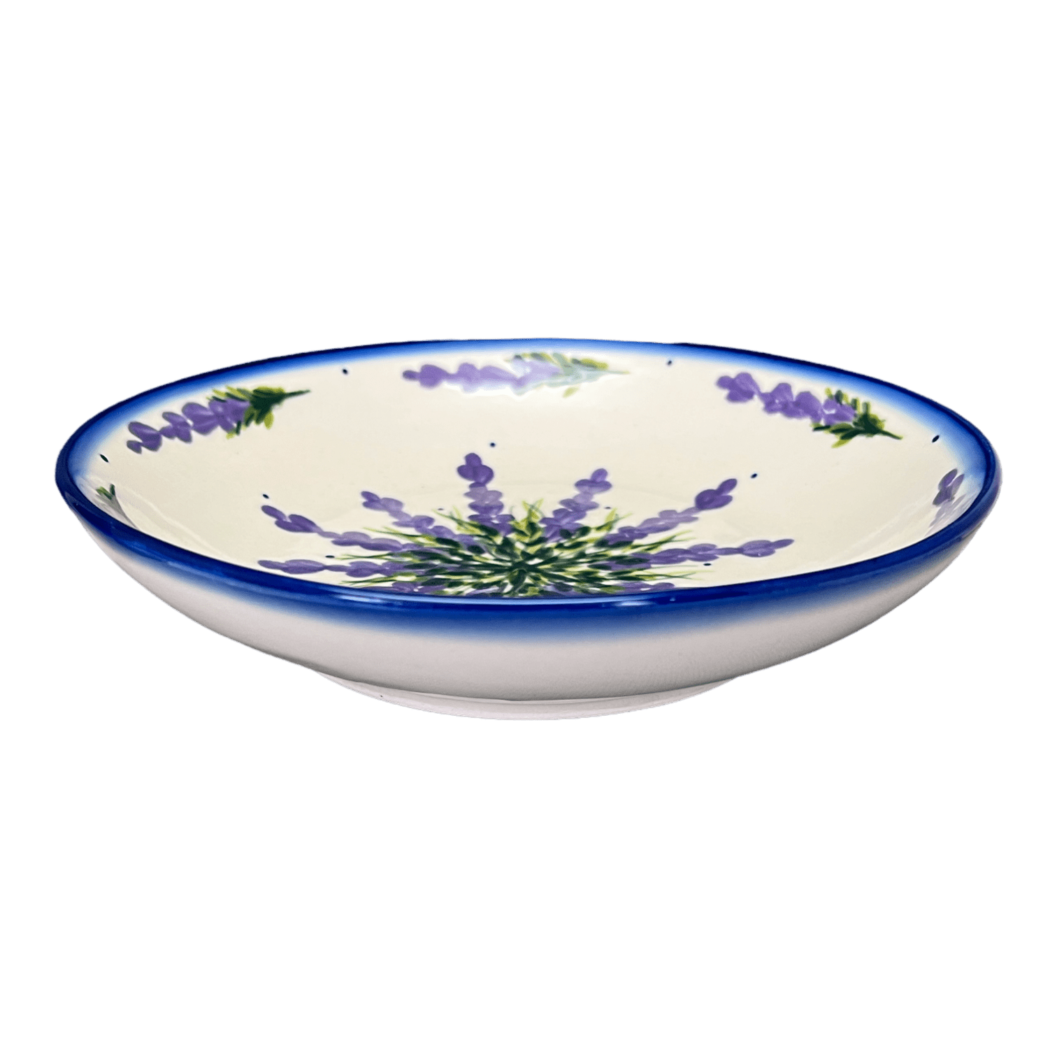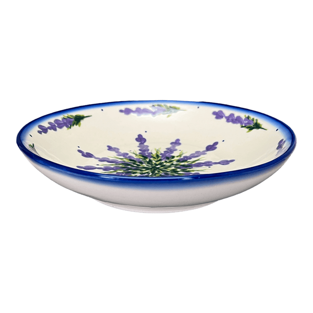 Imagine a dinner table set with the mesmerizing beauty of the Polish Pottery Bowl from W.R. Ceramika, where each piece tells a story of artistry and tradition. The "Lavender Fields" pattern, gracing this round pasta bowl, is a visual symphony of lavender flowers with delicate green roots nestled at the center, surrounded by tiny blue dots on a pristine white background. This exclusive Unikat pattern, Polish for "Unique," showcases a level of craftsmanship that transforms every meal into a luxurious dining experience. Each bowl is a canvas, where colors and elements come together in a dance guided by the skilled hands of artisans.