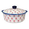 While Polish pottery is extremely durable, it should not be taken directly from the freezer and placed into a hot oven. In addition, cold water or frozen food should not be placed in a hot piece of pottery. Always allow cooling or warming to room temperatures before heating in an oven or placing in a freezer. If taken care of properly, your Polish pottery can last for generations!