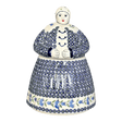 Imagine a delightful Polish Pottery Cookie Jar, standing at 10.5 inches tall, crafted by the renowned artisans of Manufaktura in the charming "Lily of the Valley" pattern. This isn't just any cookie jar; it's a whimsical Lady style vessel that promises to sprinkle magic into your kitchen. As she cradles your favorite treats, this jar transforms the simple act of reaching for a cookie into a moment of joy. Adorned with flowers in serene shades of blue, accented with touches of white and green, this jar isn't just a container—it's a centerpiece that tells tales of traditional craftsmanship and timeless beauty.