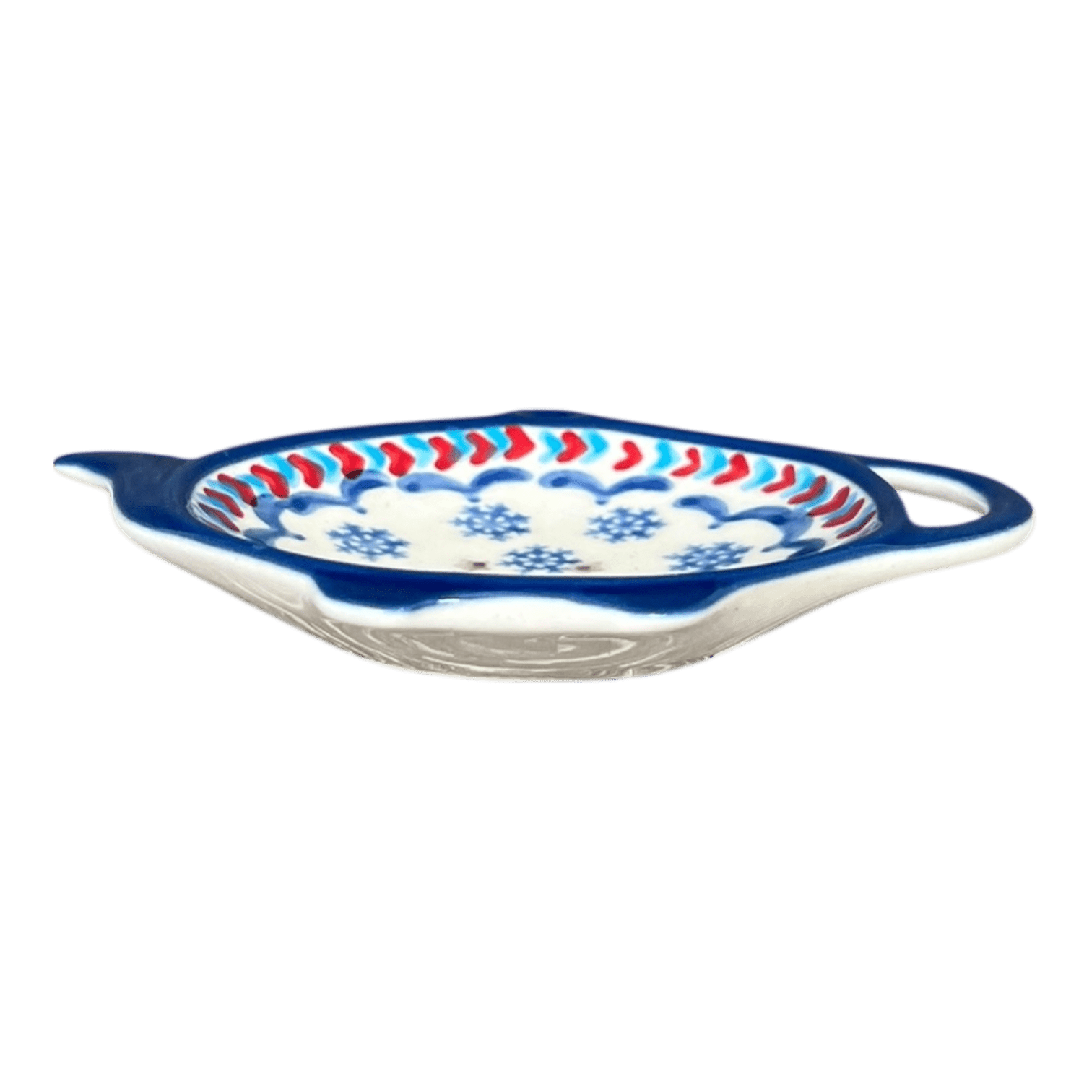 Imagine a little touch of magic on your tea table with the enchanting Polish Pottery Saucer from Manufaktura, sized perfectly at 4.25" x 3.25". This isn't just any saucer; it's a delightful, teapot-shaped canvas that brings the whimsical "Snowflake Love" pattern to life. Each piece is meticulously hand-painted in the serene town of Boleslawiec, Poland, by skilled artisans who infuse every brush stroke with passion and tradition. Whether it's for resting stirring spoons, teabags, or zesty lemon wedges, this saucer turns every tea time into a more charming affair.