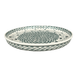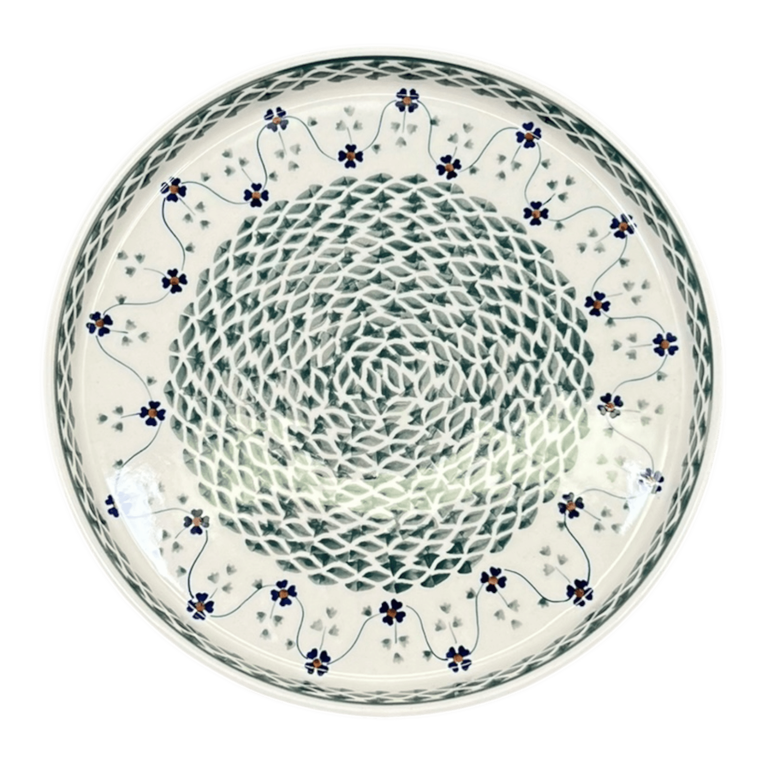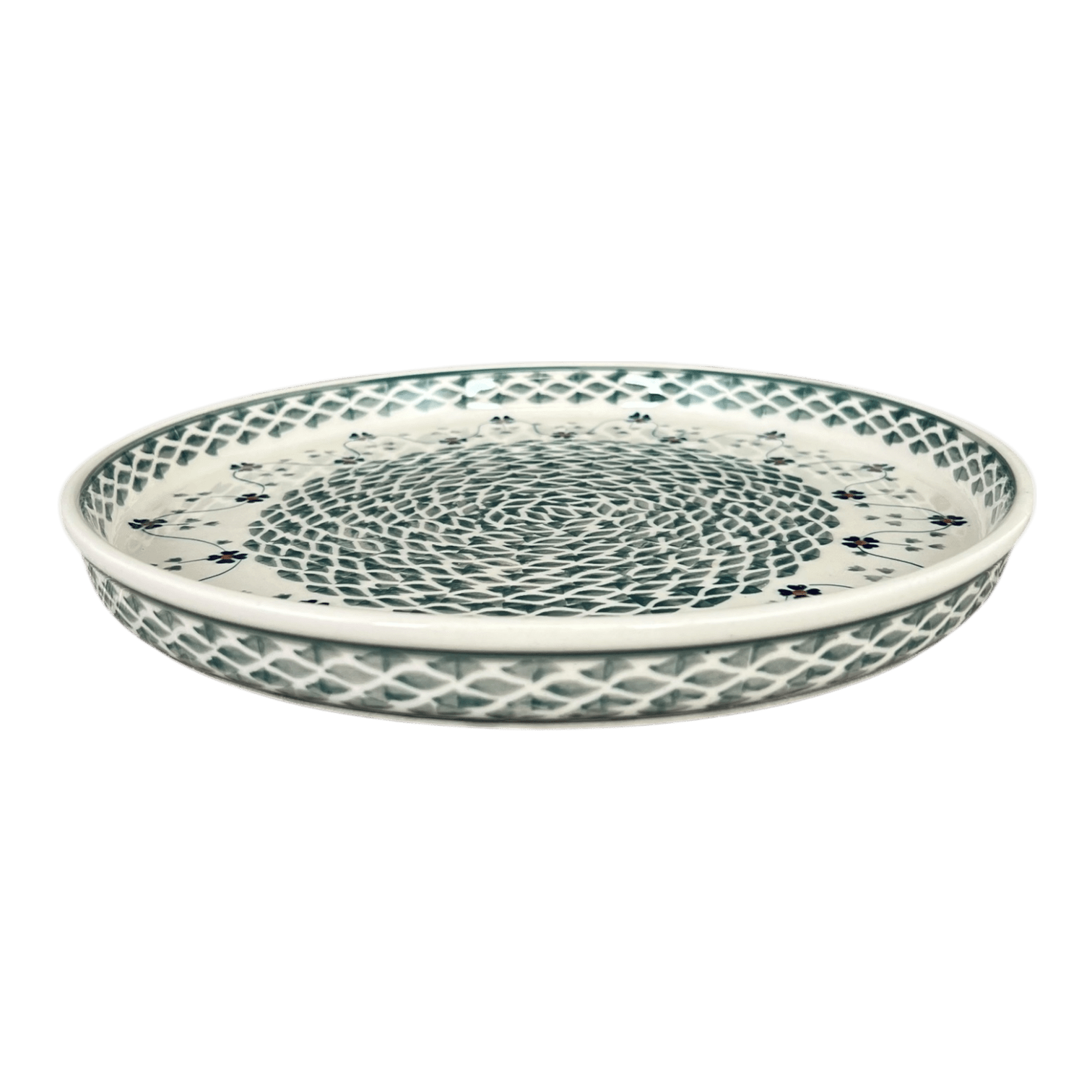 The beauty of the "Woven Pansies" pattern lies in its traditional artistry, a hallmark of Polish pottery that has been cherished for generations. The design features a serene white background interlaced with green weaving at the center, surrounded by a delicate band of small, simple flowers connected by a slender green vine. Each piece, hand-stamped using the "punching" technique, showcases the skill and passion of highly skilled artists who draw inspiration from the natural world. What's more, each tray is unique, with slight variations that add to its personal charm and story, making it not just a dish, but a piece of art.