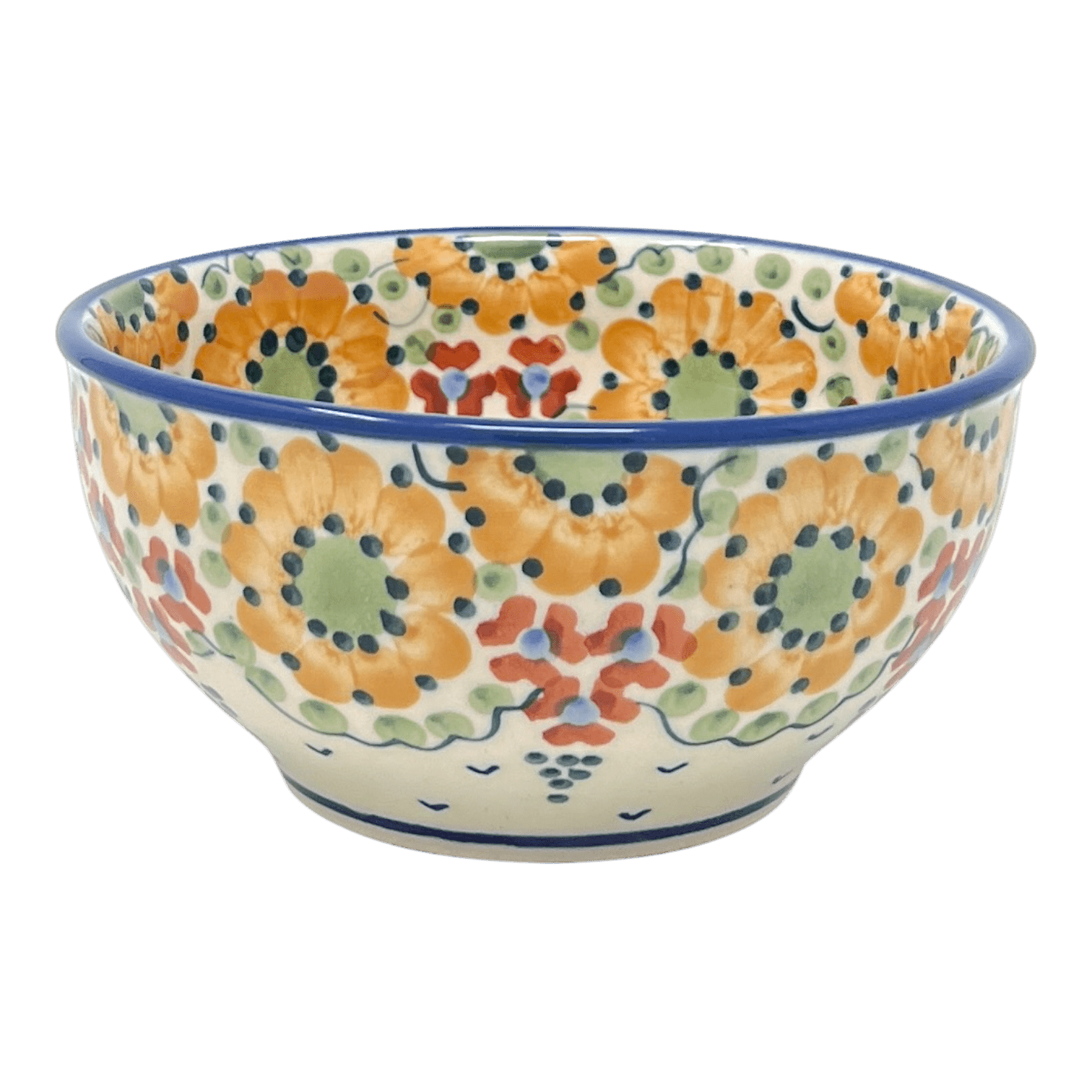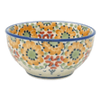 Introducing the exquisite Manufaktura Polish Pottery Bowl from the "Autumn Harvest" collection – a true masterpiece of tableware that brings a splash of artisan elegance to your everyday. Imagine the vibrant hues of autumn captured in a beautifully crafted 5.25" bowl, perfect for serving your favorite dips, nuts, or candies. This tapered gem doesn't just sit; it rests majestically on any surface, from serving platters to pizza plates, enhancing the aesthetic of your dining setup. The unique "Autumn Harvest" pattern, adorned with a symphony of gold, white, and green, features an enchanting arrangement of flowers that promises to steal the spotlight at your next gathering.