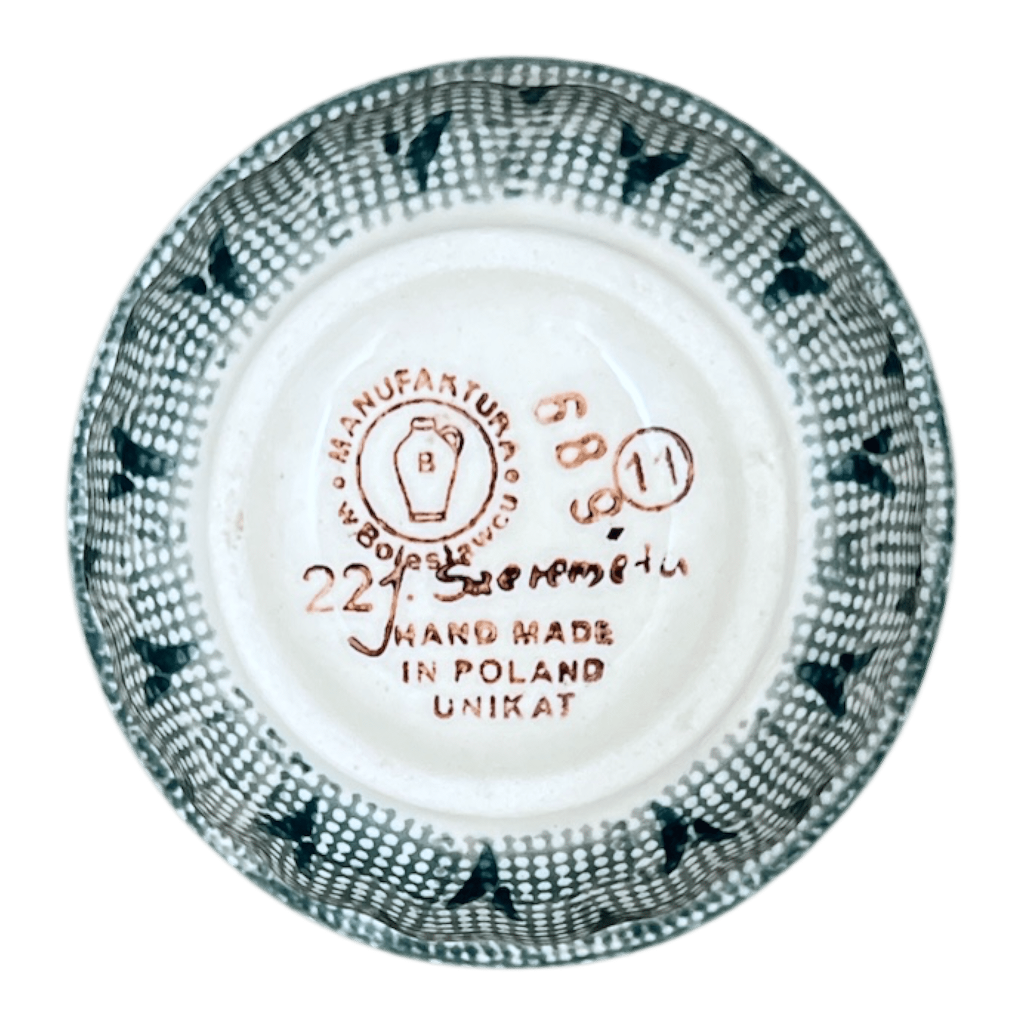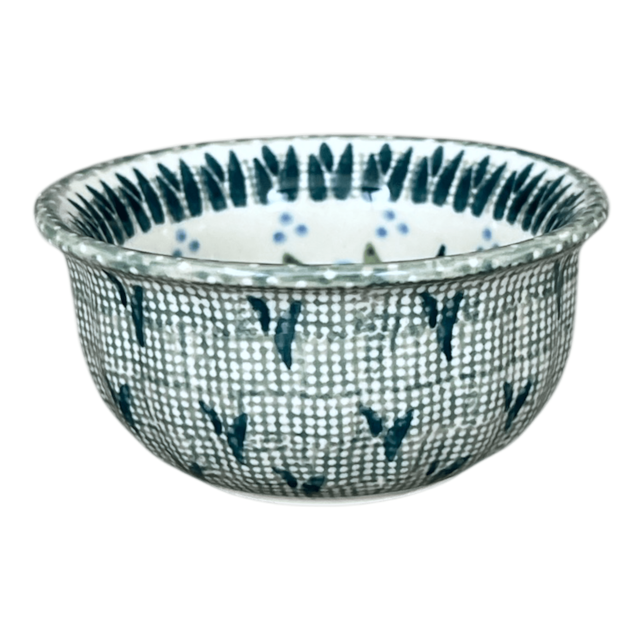 Not only is this bowl a visual delight, but it is also highly functional. With a capacity of 5 oz. and dimensions of 3.5" in diameter and 2" in height, it is perfect for serving individual portions or as a charming addition to your table setting. Made and hand-painted in Boleslawiec, Poland by skilled artisans, this Polish Pottery bowl is crafted with high-quality materials that are tough, durable, and chip resistant. It is also free of lead, nickel, and cadmium, ensuring the safety of your food and beverages.