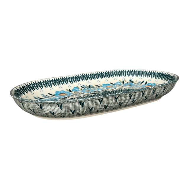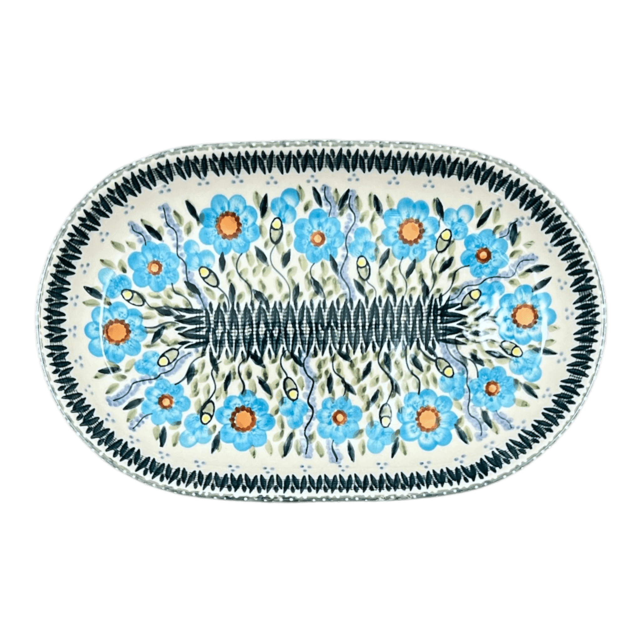 Plate, Roaster, Oval, 7"x11" in "Baby Blue Blossoms" by Manufaktura | P099S-JS49 is backordered and will ship as soon as it is back in stock.