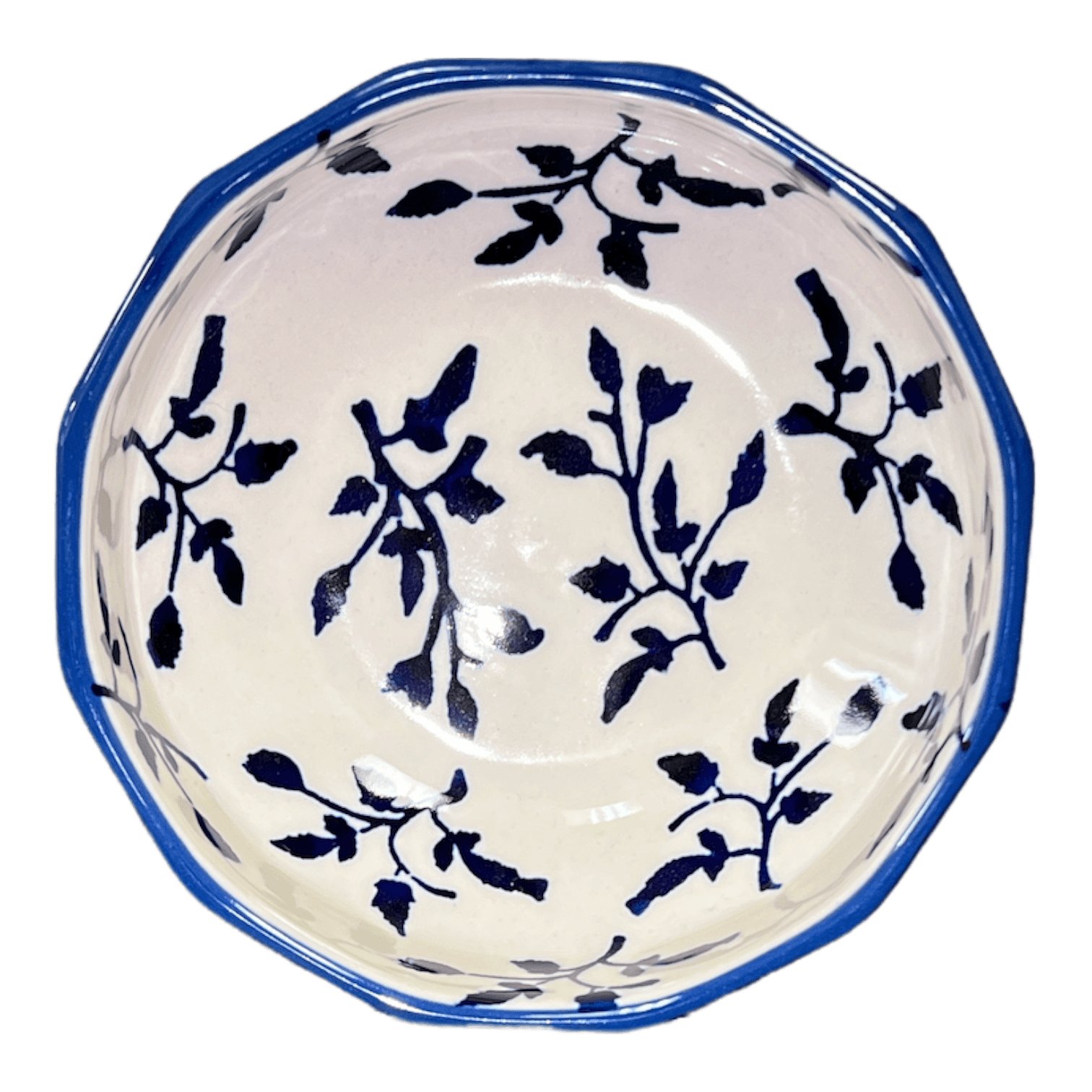 Imagine a bowl that does more than just hold your food; it tells a story, a tale of artistry and tradition. The Polish Pottery Bowl from Manufaktura, featuring the enchanting "Blue Spray" pattern, is exactly that. Each 5-inch, multiangular bowl is a canvas displaying a delicate, leafy branch that dances across a crisp white background, its blue hues popping with vibrancy. Crafted in the heart of Boleslawiec, Poland, these bowls are not just containers but pieces of art, meticulously hand-painted by skilled artisans who bring each detail to life using the traditional "punching" technique of hand stamping.