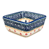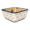 Introducing the enchanting Manufaktura 3.5" Square Baker, a piece that transcends mere functionality to become a canvas of artistic expression! This exquisite Polish pottery, adorned with the "Bouquet in a Basket" pattern, is not just a baker—it's a versatile marvel. Imagine it as a charming 10 oz ramekin, a quaint individual baker, or even a whimsical holder for your colorful post-it notes. The fun doesn’t stop there; nestle four of these beauties inside the larger 8" x 8" Square Baker (#P151) to create a stunning five-piece set that’s sure to captivate and impress. With its vibrant palette of browns, blues, peaches, and whites, this baker brings a burst of countryside charm right into your kitchen.