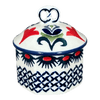 Imagine a tiny treasure trove, artfully crafted and bursting with vibrant colors, ready to add a sprinkle of charm to your everyday life. Enter the world of the Polish Pottery Box, Mini Pretzel, standing petite at 2.75 inches, and handcrafted by the esteemed artisans of Manufaktura. Whether it's cradling your favorite butter or safeguarding your cherished jewels, this exquisite box, adorned with the delightful "Bouquet in a Basket" pattern, transforms ordinary storage into a visually stunning experience. Picture the predominantly brown backdrop, playfully accented with hues of blue, peach, and white, bringing a warm, inviting glow to any corner of your home.