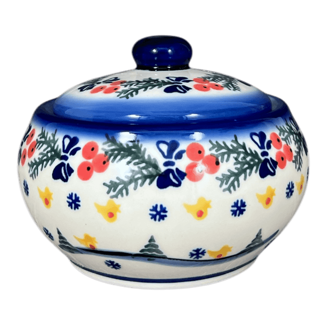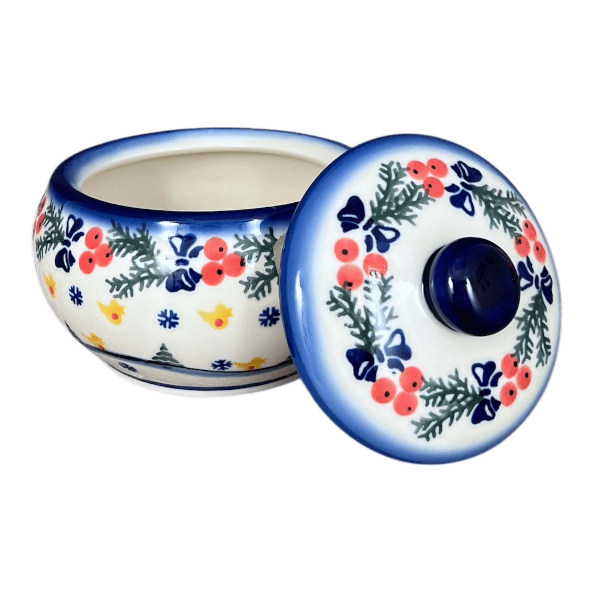 Container, Round, Covered, 5" x 4", WR (WR31I) in "Bows in Snow" by W.R. Ceramika | WR31I-WR15 is backordered and will ship as soon as it is back in stock.
