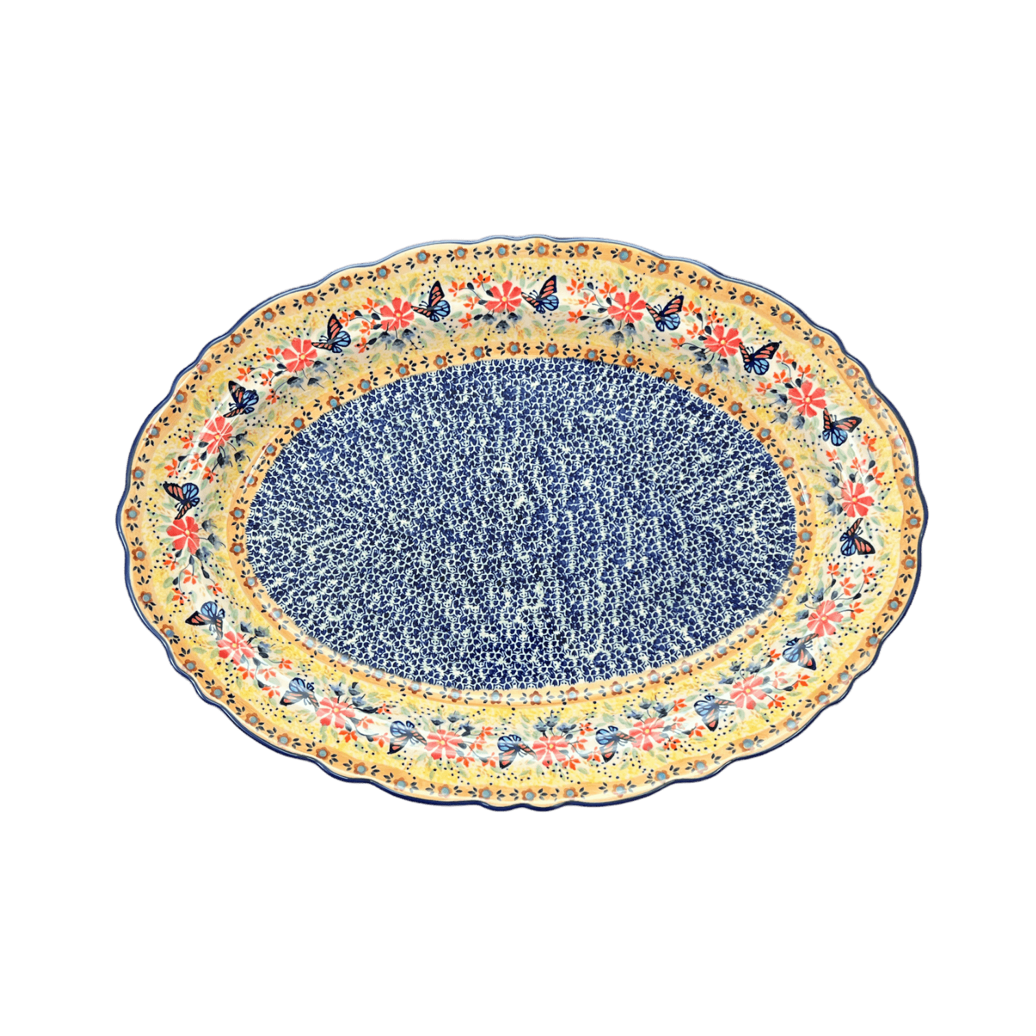 Platter, Oval, Scalloped, 16.75" x 12.25" Large in "Butterfly Bliss" by Manufaktura | P165S-WK73 is backordered and will ship as soon as it is back in stock.