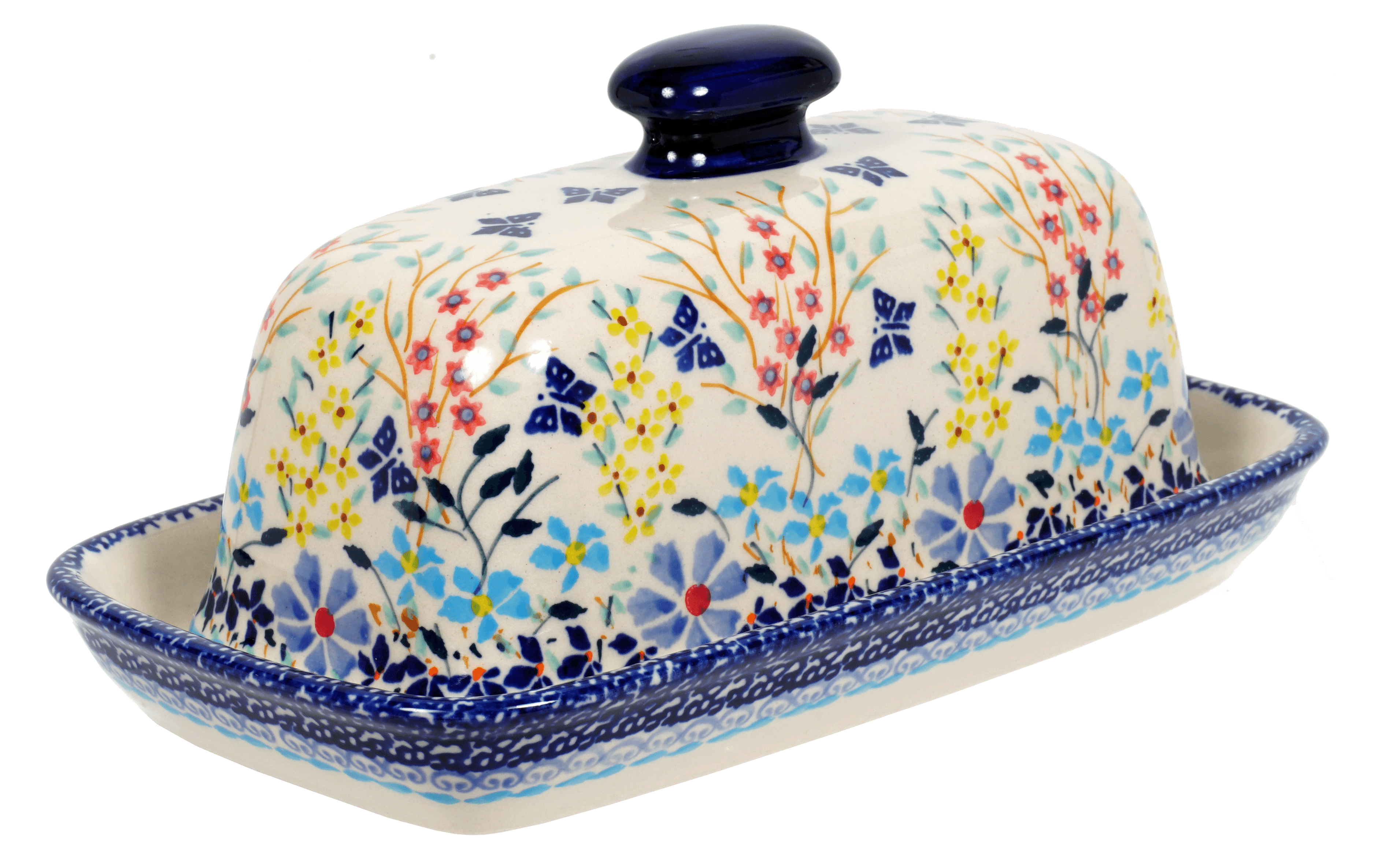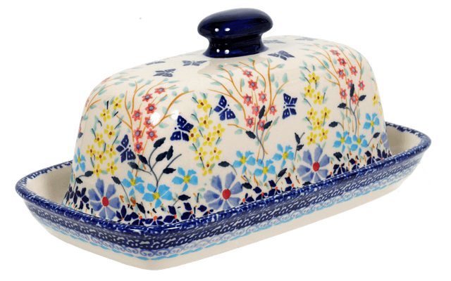 Butter Dish, American, 4" x 7.5" in "Butterfly Bounty" by Manufaktura | M074S-WK76 is backordered and will ship as soon as it is back in stock.