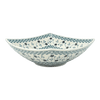 Introducing the enchanting "Butterfly Garden" Polish Pottery Bowl from Manufaktura, a treasure that transforms any room into a whimsical garden of delights! This large 10.5" square nut dish is not just a container, but a piece of art, meticulously hand-painted in Boleslawiec, Poland. The bowl features a serene white background, adorned with a delicate band of white flowers outlined in blue that dance across two corners. Meanwhile, playful butterflies flutter through the remaining space, adding a touch of magic and color. This traditional pattern, created using the ancient "punching" technique, showcases the exceptional skills of Polish artisans, making each piece uniquely beautiful.