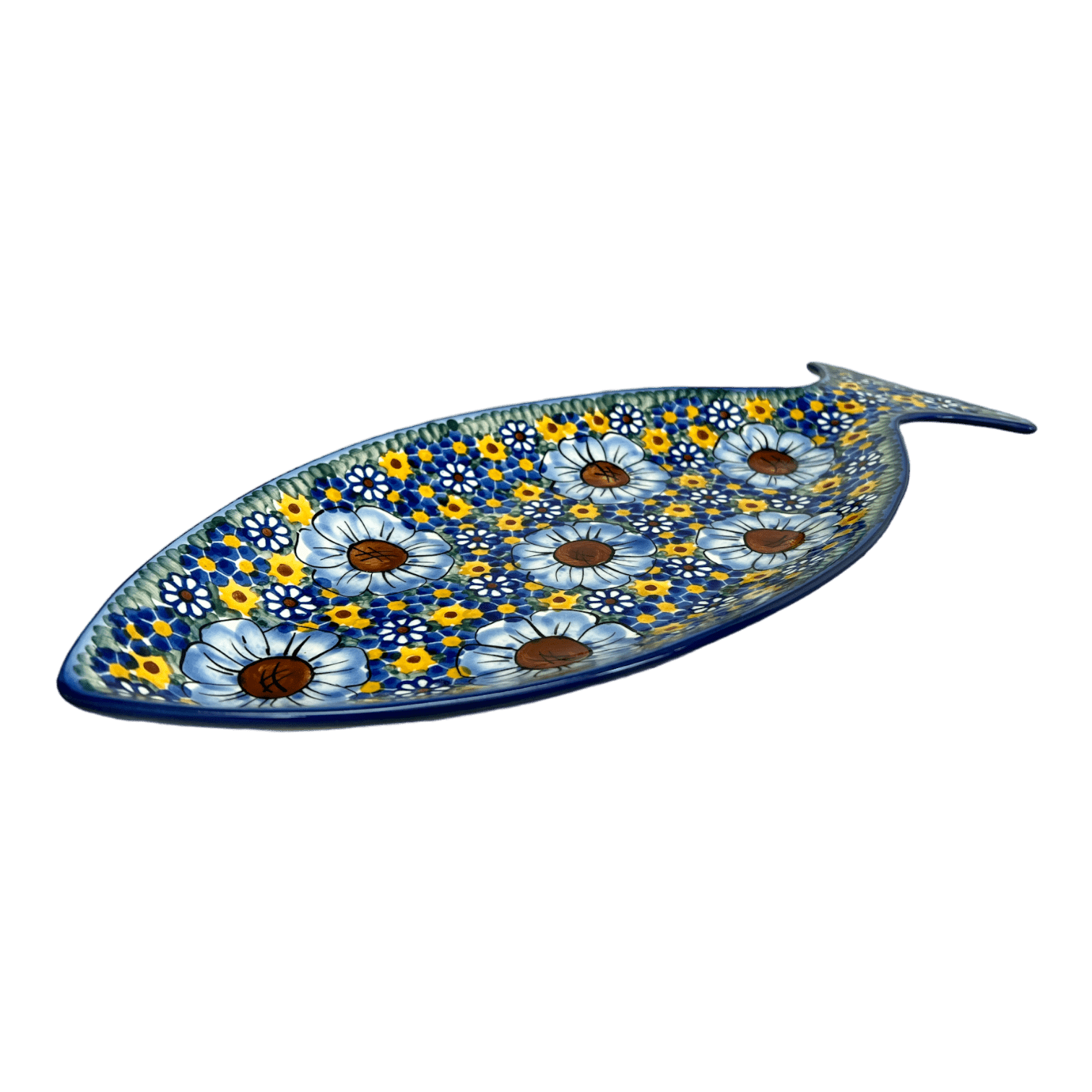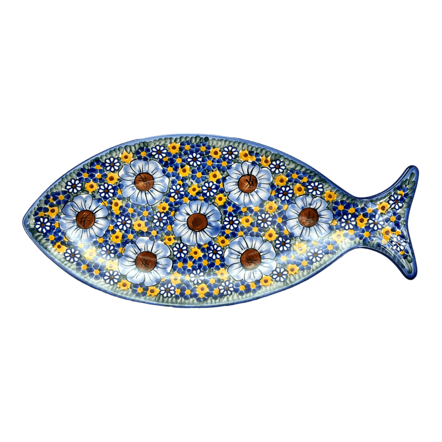 Plate, Fish-Shaped, 14.5" x 6.5", WR (WR13O) in "Chamomile" by W.R. Ceramika | WR13O-RC4