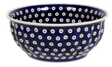 Introducing the Polish Pottery 9" Bowl by Manufaktura in the whimsical "Dot to Dot" pattern (70A). This bowl is not just your average serving dish - it's a versatile superstar that can handle salads, pastas, stews, and even moonlight as a mixing bowl! The "Dot to Dot" pattern is a delightful fusion of blue and white, with playful polka-dots scattered across a captivating blue background. It's like a cheerful dance party on your dinner table!