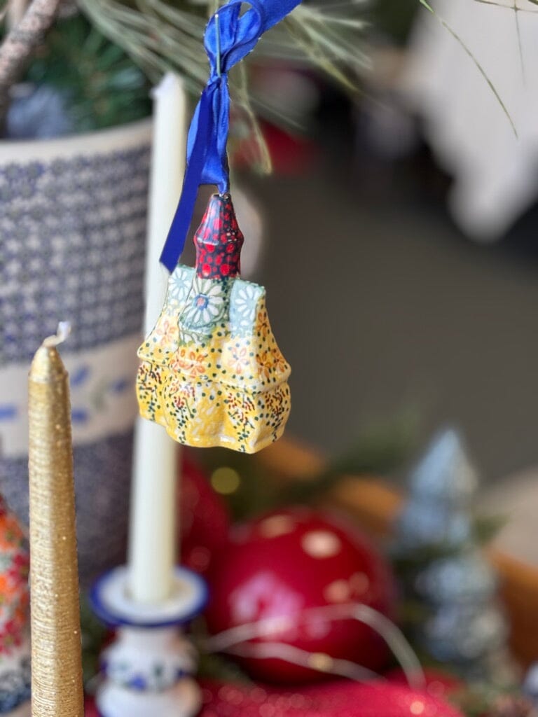 The "Dot to Dot" pattern is a testament to the celebrated artistry of Polish pottery, renowned for its vibrant yet traditional patterns that have adorned homes for centuries. Using the time-honored "punching" technique, each ornament is meticulously hand-stamped, ensuring that no two pieces are exactly alike. This unique touch adds a personal flair to your decor, making each castle ornament a special part of your holiday celebration. Whether hanging from the tree or displayed on a mantel, these ornaments are designed to capture hearts and complement any festive arrangement.