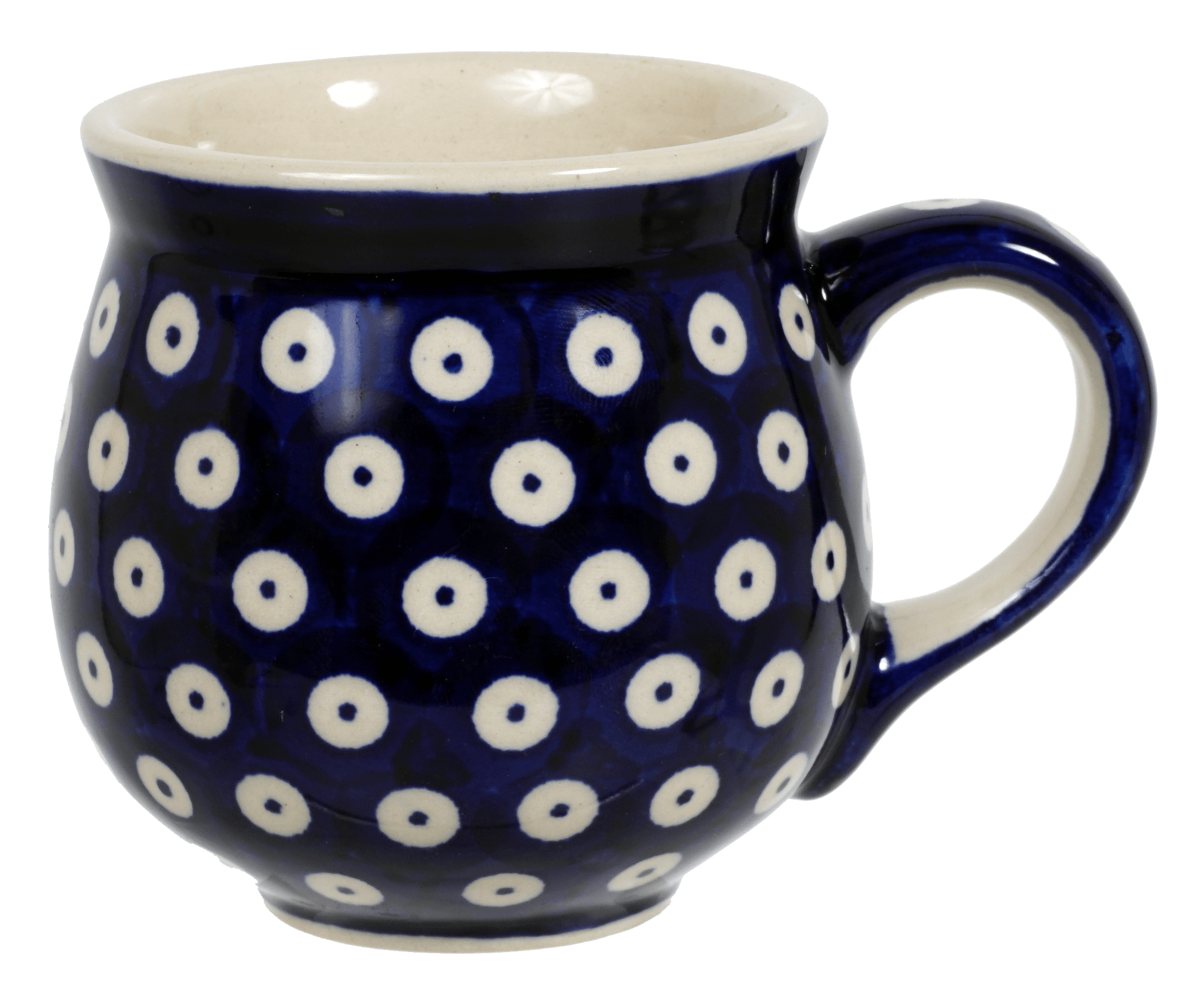 Start your day off right with the Polish Pottery 10 oz. Mug by Manufaktura in the delightful "Dot to Dot" pattern (70A). This medium belly mug is the perfect shape for sipping your morning coffee or tea. And let's be honest, there's just something special about drinking from a beautifully designed mug. It's like a little burst of joy with every sip!