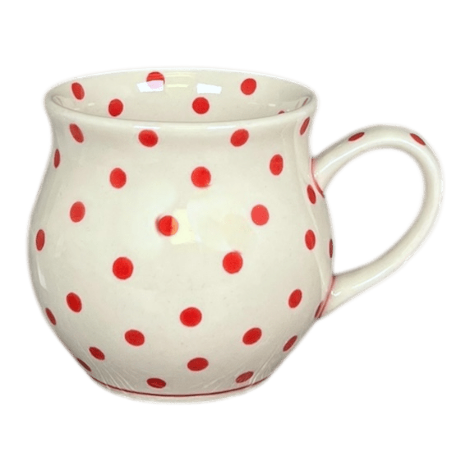 Imagine cradling a warm, inviting cup of your favorite tea or coffee, enhanced not just by its comforting aroma but also by the exquisite vessel it's served in. Enter the world of Polish pottery and meet the stunning Galia Belly Mug in the "Dotted Reds" pattern. This 12 oz medium-sized mug is not just a drinkware item; it's a piece of art. Each mug is meticulously handcrafted and painted by the skilled artisans at Ceramika Galia, a cherished family-owned company. Their dedication to tradition and quality ensures that no two mugs are exactly alike, making each one a unique treasure.
