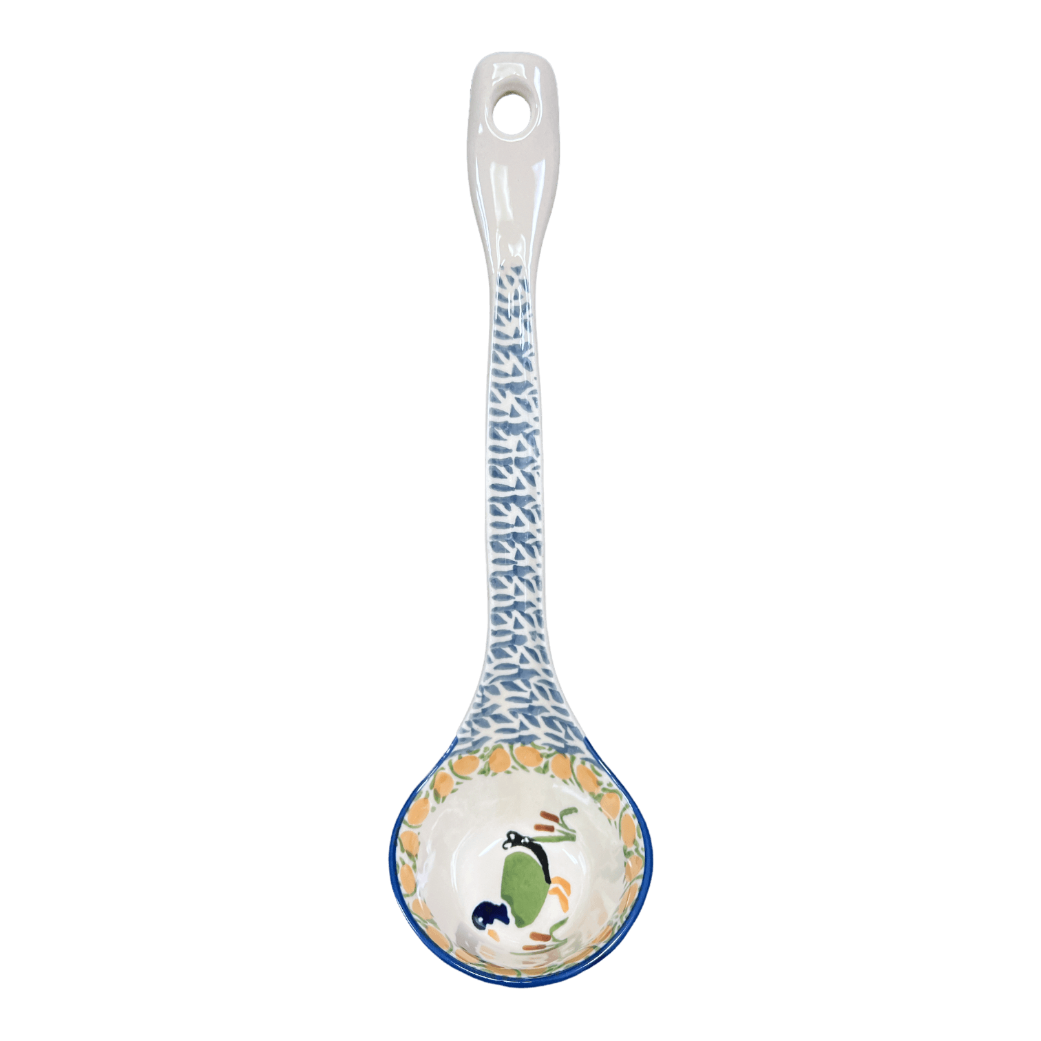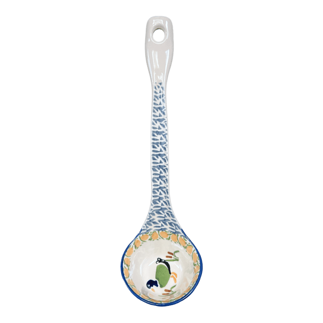 Get ready to dish out some serious style with the Polish Pottery 12" Soup Ladle by Manufaktura in the "Ducks in a Row" pattern (P323). This ladle is not only functional, but it's also a beautiful piece of art that you can proudly display in your kitchen.