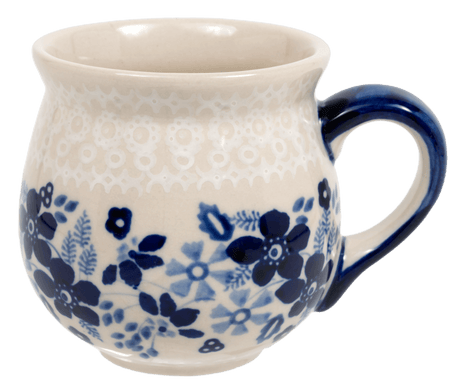 Mug, Belly Mug, Small, 7 oz in "Duet Blue Wreath" by Manufaktura | K067S-SB07