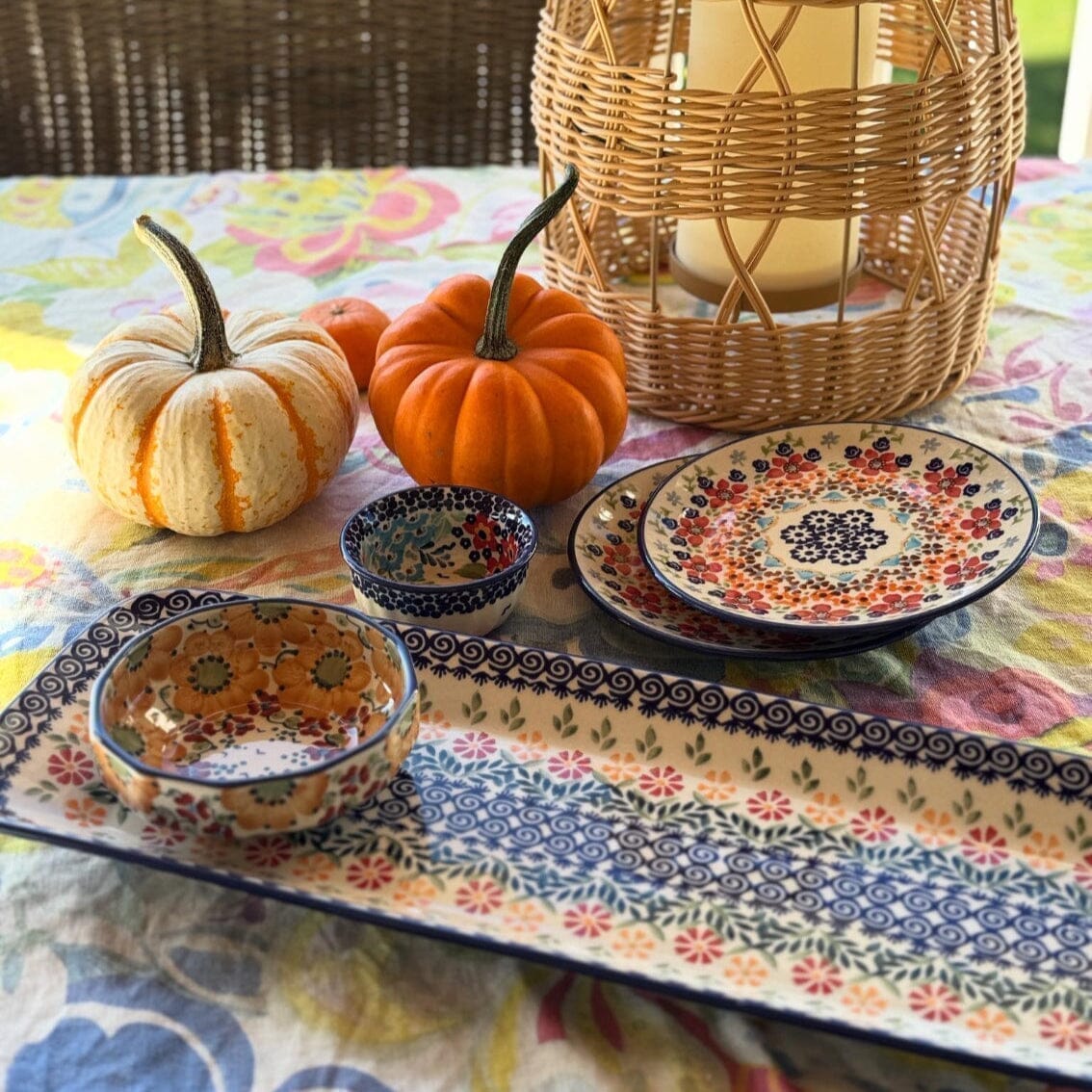 Imagine setting the stage for a dazzling dinner with the exquisite Polish Pottery Platter from Manufaktura. Measuring a generous 19.5" x 6.75", this rectangular masterpiece is not just a serving tray; it's a canvas showcasing the stunning "Floral Fans" pattern. Perfect for an array of culinary delights—from hors d'oeuvres and bread to cheeses, pastries, and desserts—this platter promises to transform every meal into a vibrant celebration. Hand-painted in Boleslawiec, Poland, by highly skilled artisans, each platter tells a story of tradition, artistry, and meticulous attention to detail, making it a fabulous addition to your dining decor.