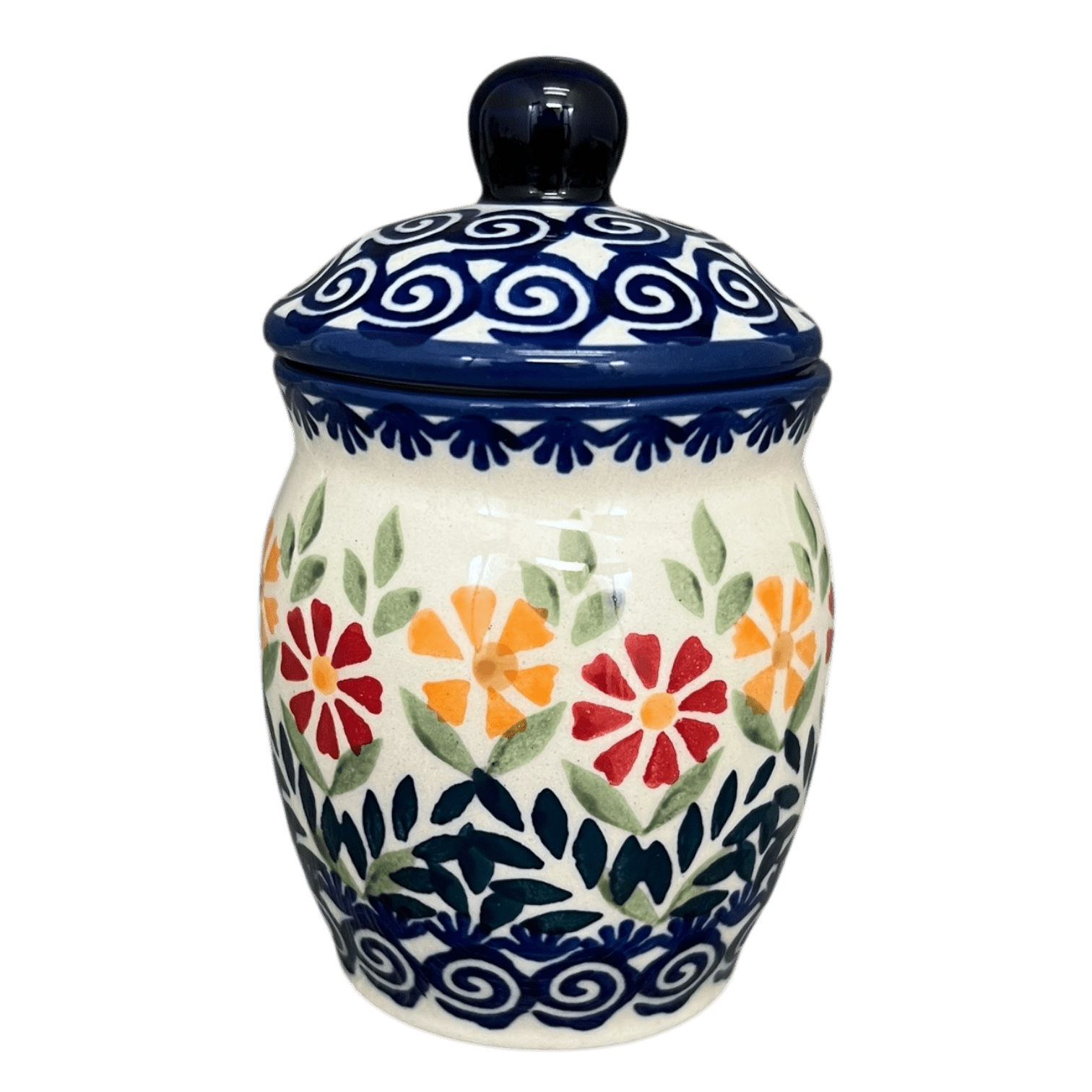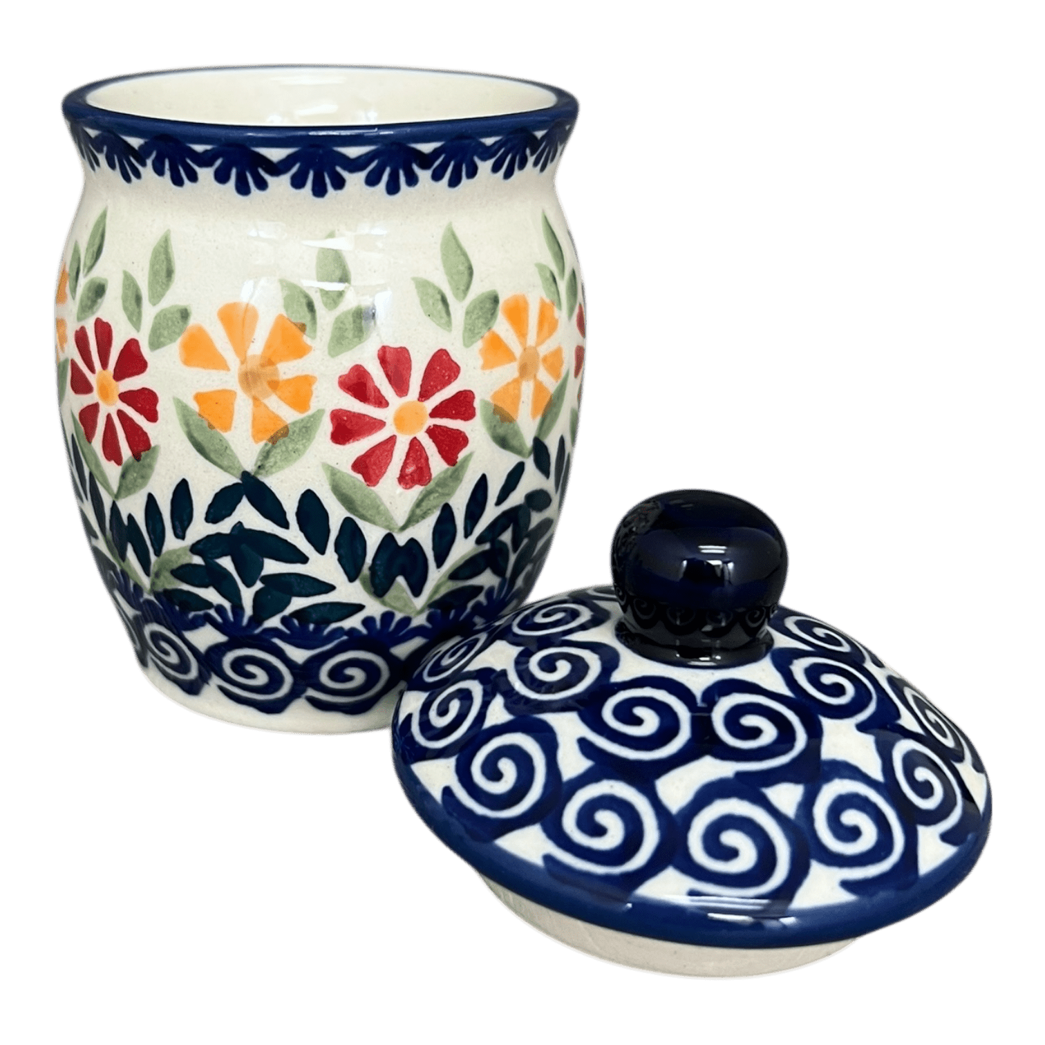 Beyond its stunning design, this Polish Pottery Canister is built to last, made with high-quality materials that are tough, durable, and chip-resistant. Not only is it a feast for the eyes, but it's also incredibly functional, safe for use in the dishwasher, microwave, freezer, and oven (up to 425 degrees). Whether you're mixing and matching with other pieces to create a dazzling display for your guests or using it to brighten your daily routine, this canister adds a perfect splash of color and tradition to your home. Hand-painted in Boleslawiec, Poland by the award-winning artisans of Manufaktura, this canister is a testament to the enduring beauty and utility of Polish pottery.