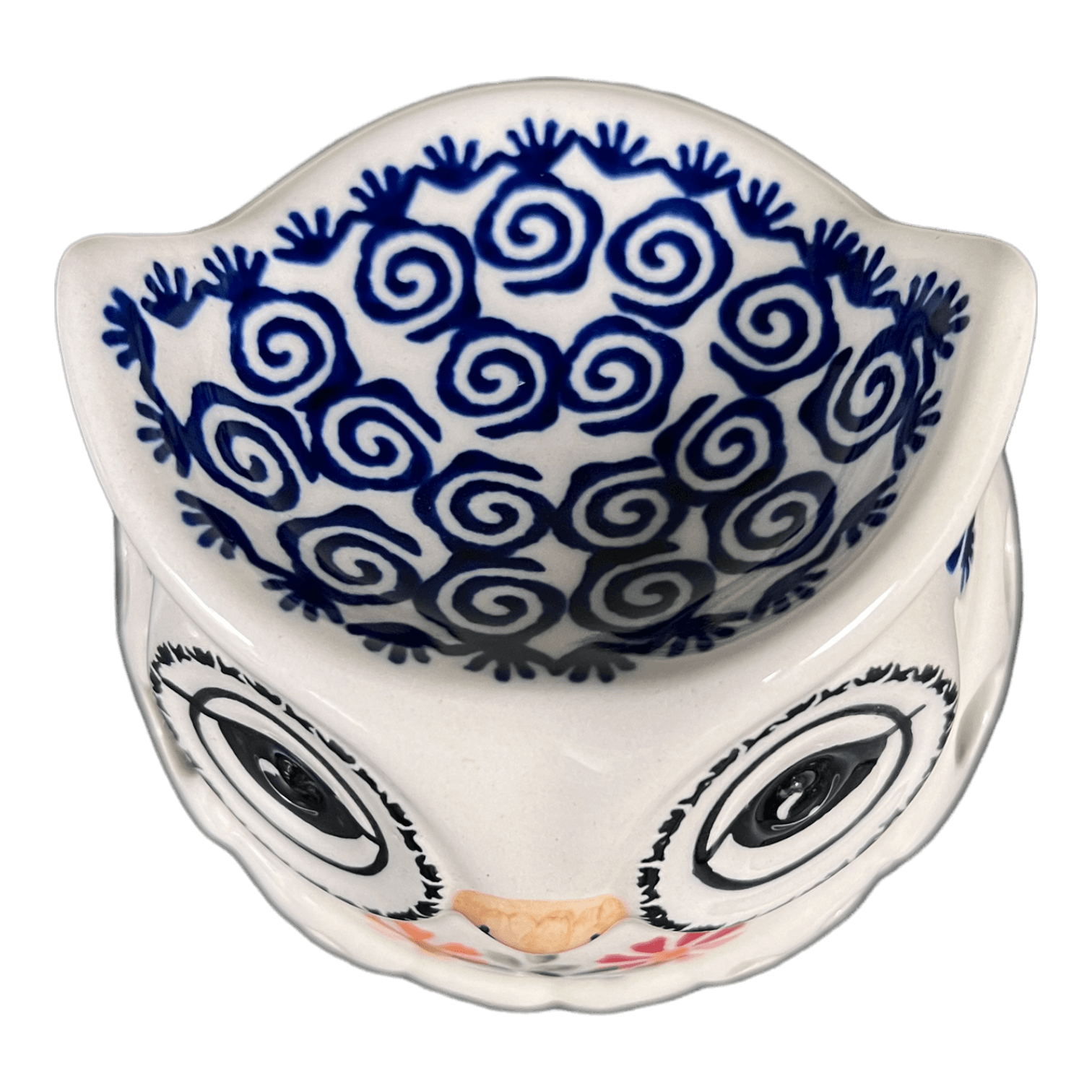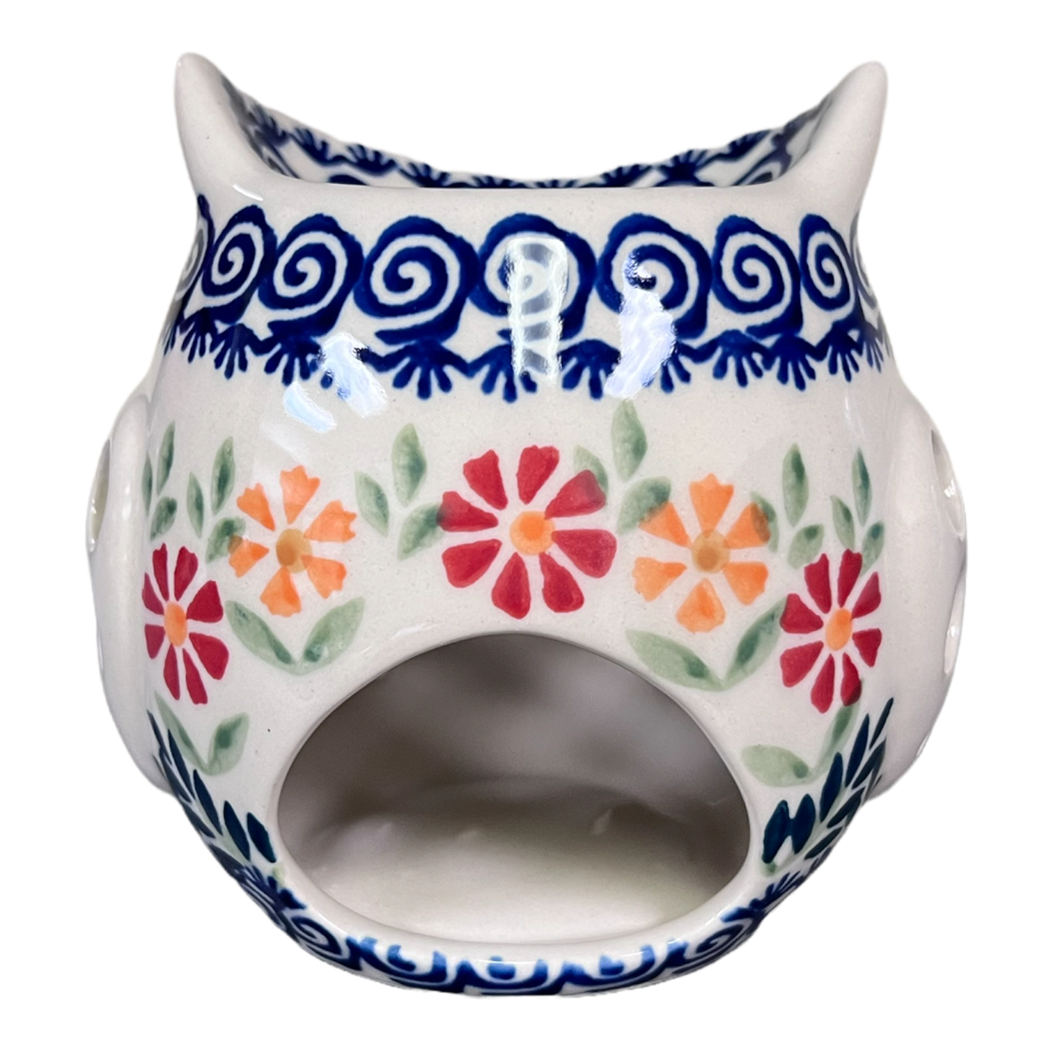 Whoo-whoo is ready to light up their home with a dash of whimsy and a sprinkle of floral charm? Meet the enchanting Polish Pottery Luminary Owl, crafted with care by the skilled artisans of Manufaktura in the vibrant "Flower Power" pattern. Picture this: a cozy evening, a book in hand, and the soft, flickering glow of a tealight emanating from within this charming owl, casting playful shadows and bathing your room in a warm, inviting light. The intricate "Flower Power" design, featuring a delightful mix of red, orange, and blue flowers set against a crisp white background with swirling blue accents, turns this luminary into not just a source of light but a piece of art.