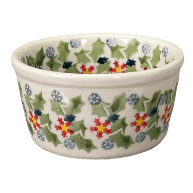 Featuring the enchanting "Holly In Bloom" pattern, these ramekins are a true feast for the eyes. The design incorporates Christmas elements in a predominantly Blue color, with accents in Green and Red, and a dash of White to tie it all together. Talk about festive!