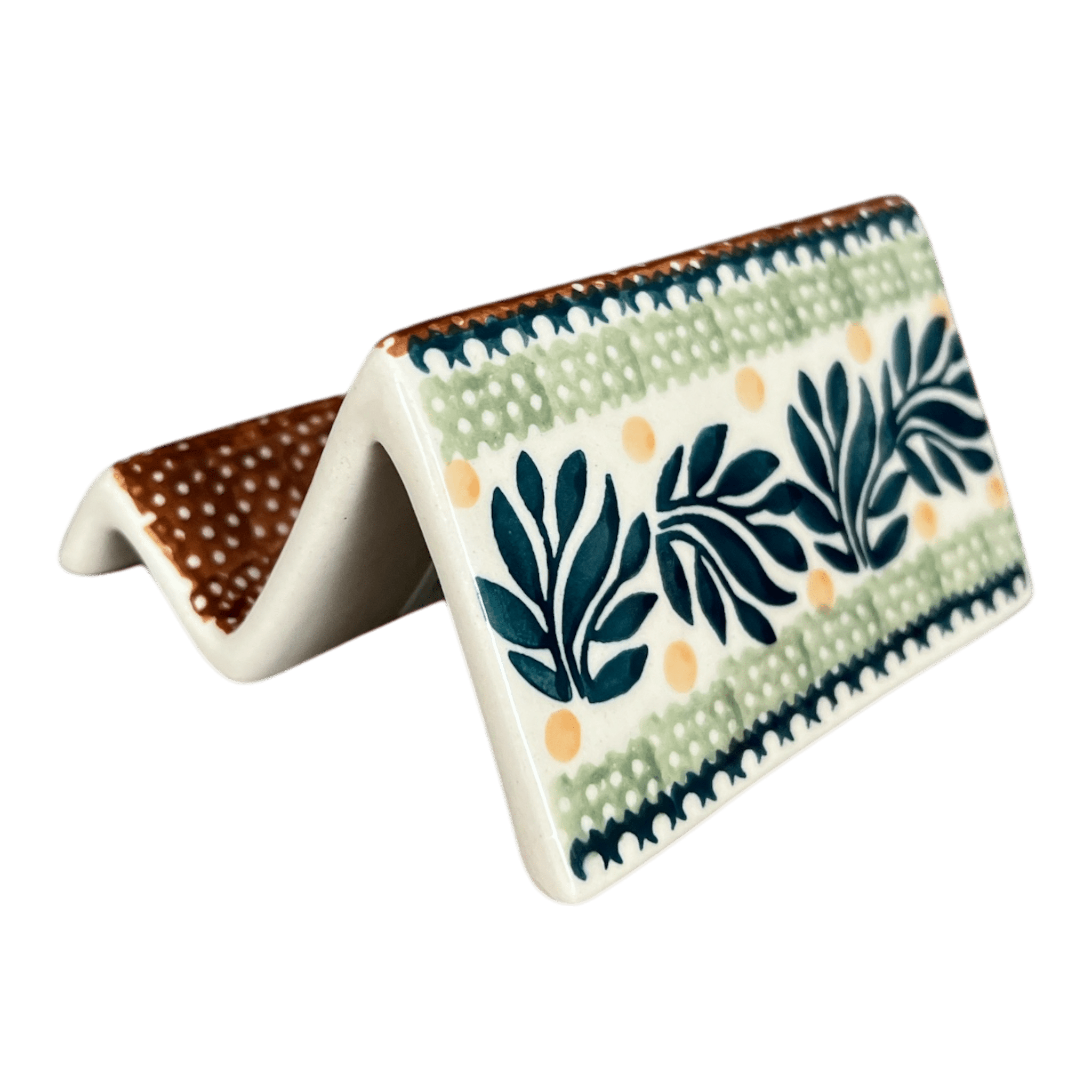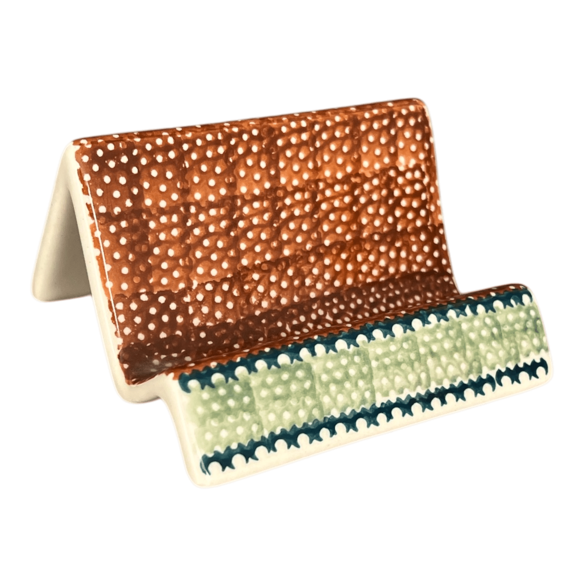 Imagine a splash of the wild right on your desk or kitchen counter with the enchanting Manufaktura Polish Pottery Stand. Designed to cradle your phone or display your business cards, this piece isn’t just functional; it’s a snippet of artistry. The "Jungle Flora" pattern is a lush tapestry of large teal green leaves that dance around a solid brown center dotted with tiny white specks. Handcrafted in the heart of Boleslawiec, Poland, this stand measures 4" x 2" and brings a piece of the jungle’s vibrancy into your daily routine. Whether you're streaming your favorite cooking show or impressing clients with your business card arrangement, this stand adds a flourish of elegance and organization.