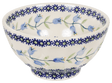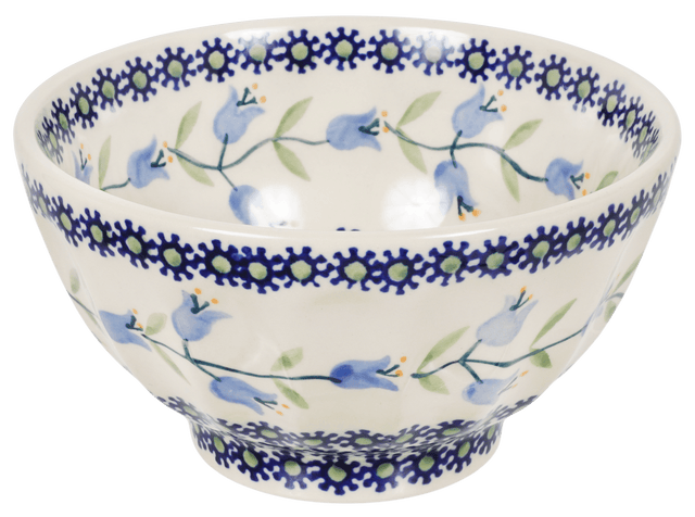 Imagine a touch of elegance and tradition gracing your dining table with the exquisite Polish Pottery Bowl from Manufaktura, showcased in the charming "Lily of the Valley" pattern. This 5.5-inch round bowl is not just a dish; it's a piece of art, hand-painted in Boleslawiec, Poland by skilled artisans renowned for their craftsmanship. The bowl features a delightful display of blue and green blossoms set against a crisp white background, framed by light blue bellflowers twining on a green vine. Perfect for everything from a hearty soup to a refreshing ice cream, this bowl serves up your favorite foods with a side of beauty.