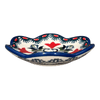 Imagine a piece of art so versatile it can hold your precious jewels, illuminate a corner with a candle, or simply adorn your bookshelf with a splash of elegance. Introducing the Polish Pottery Bowl, Scalloped, Shallow, 4.25" in the enchanting "Misty Blue" pattern by Manufaktura. This isn't just any bowl; it's a small masterpiece, crafted with love in the heart of Boleslawiec, Poland. The charming "Misty Blue" pattern is speckled with tiny blue dots set against a pristine white background, turning everyday objects into an exhibition of classic design with a whimsical twist.